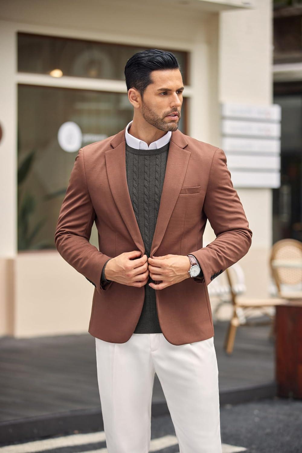 COOFANDY Mens Casual Blazer Knit Sport Coat Lightweight Two Button Suit Jacket(Light Khaki)