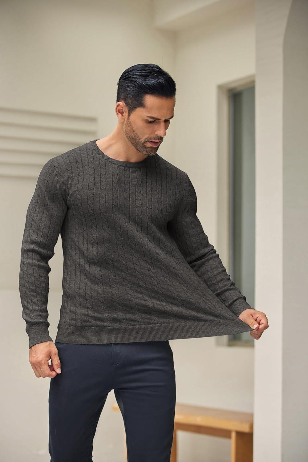 COOFANDY Men’s Crewneck Knit Sweater Slim Fit Lightweight Casual Twist Patterned Cable Knitted Pullover(A-dark Grey)