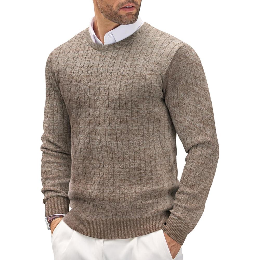 COOFANDY Men’s Crewneck Knit Sweater Slim Fit Lightweight Casual Twist Patterned Cable Knitted Pullover(A-white/Brown (Two-tone Colors))
