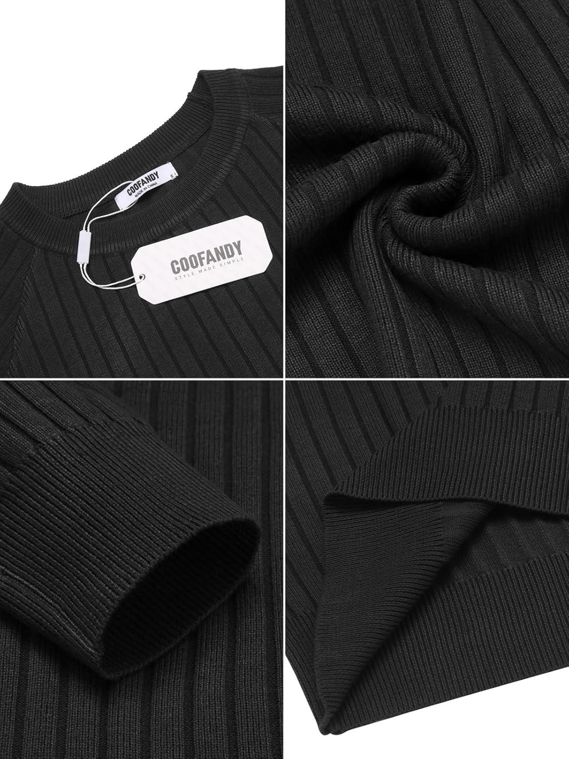 COOFANDY Mens Crewneck Pullover Sweaters Business Casual Long Sleeve Slim Fit Sweater Chunky Cable Knit Sweater(Black-narrow Ribs)