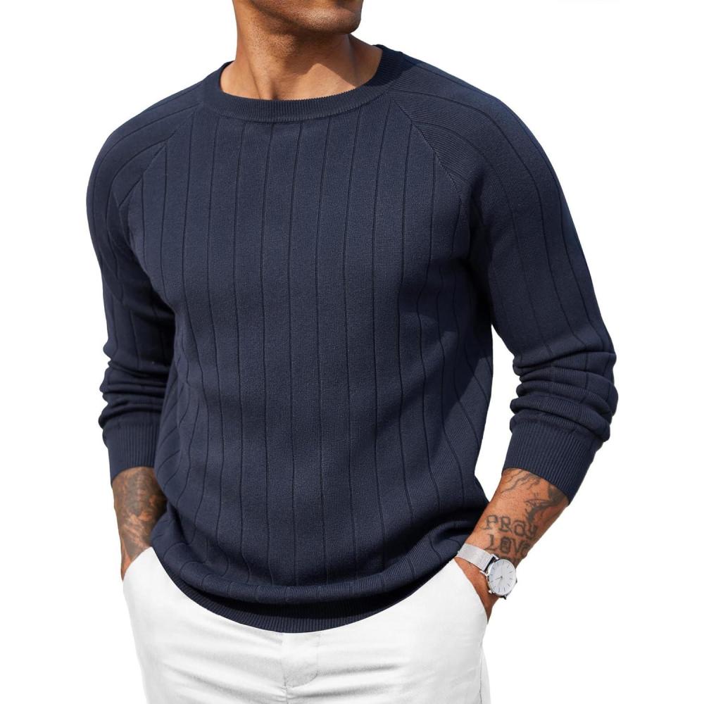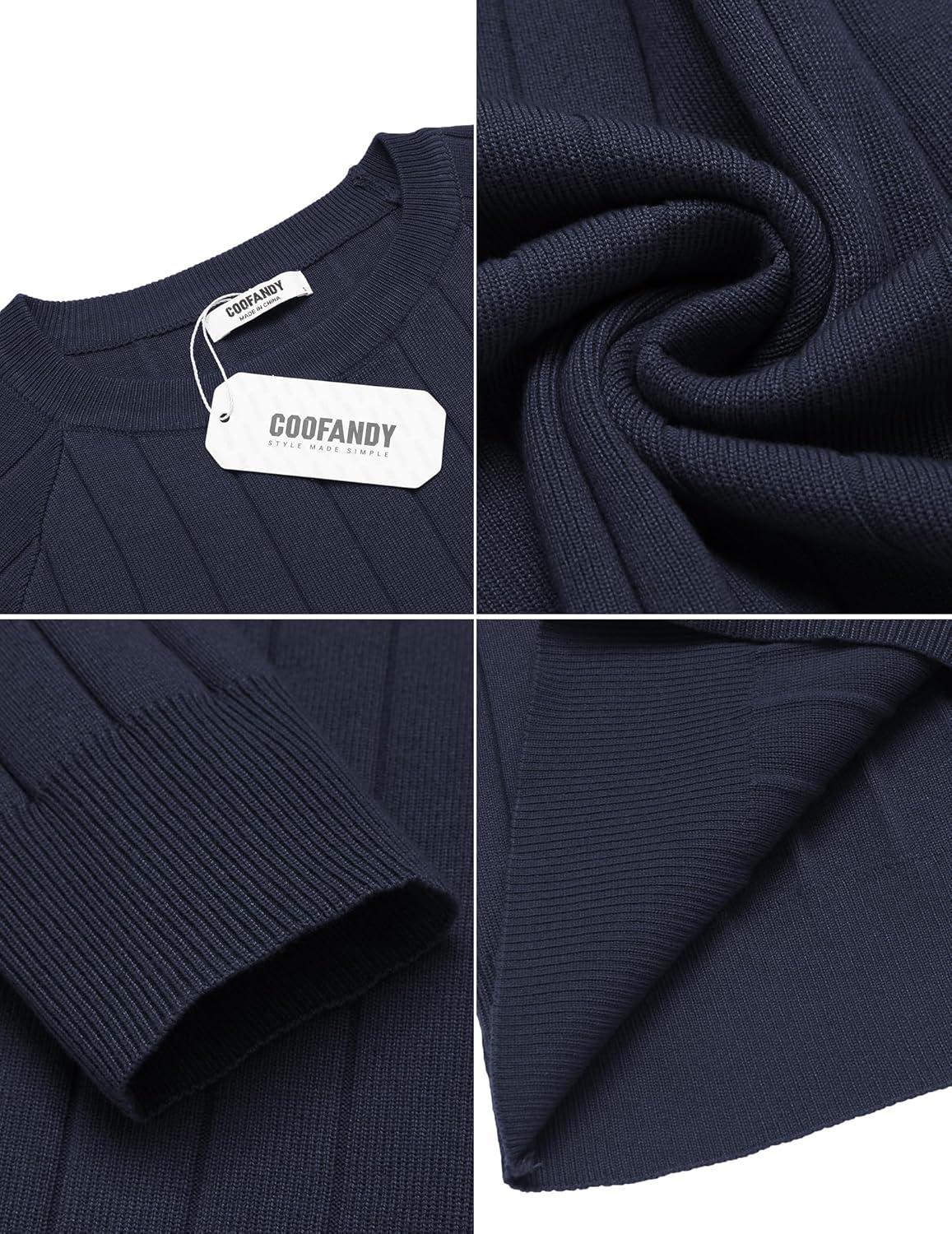 COOFANDY Mens Crewneck Pullover Sweaters Business Casual Long Sleeve Slim Fit Sweater Chunky Cable Knit Sweater(Dark Blue)