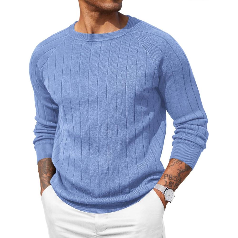 COOFANDY Mens Crewneck Pullover Sweaters Business Casual Long Sleeve Slim Fit Sweater Chunky Cable Knit Sweater(Light Blue)