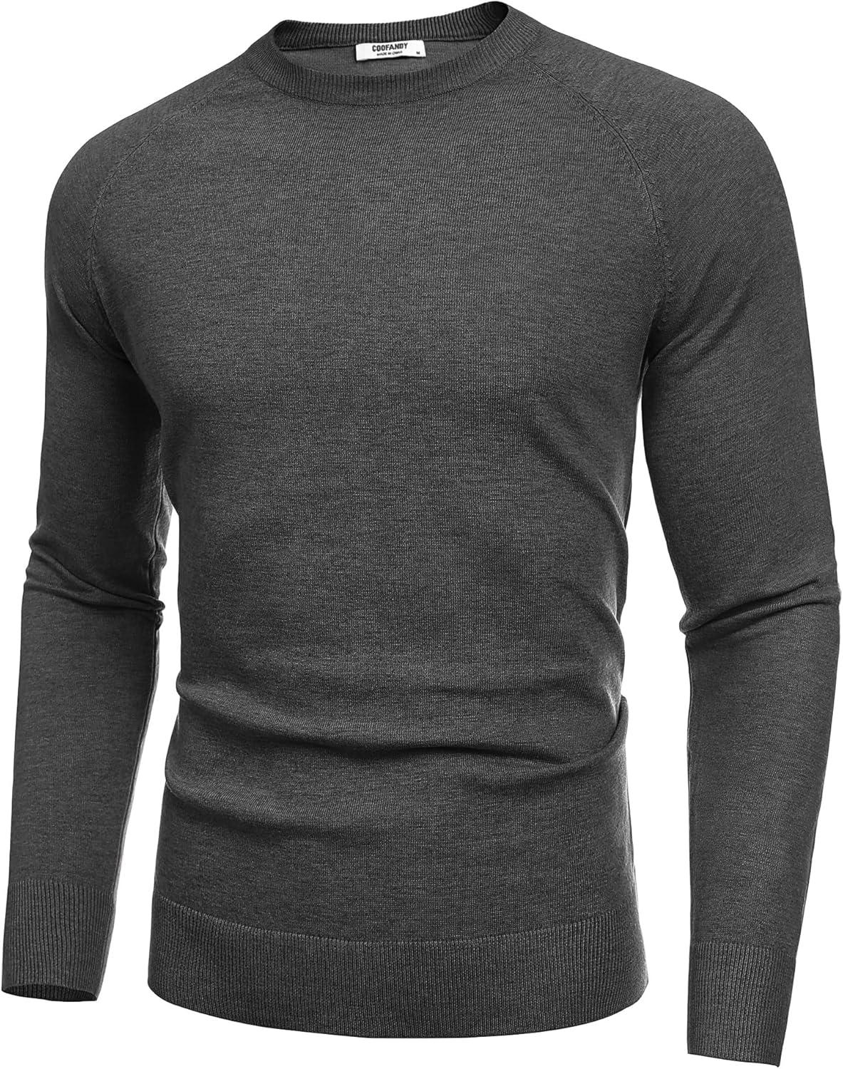 COOFANDY Men’s Crewneck Sweater Casual Dress Pullover Sweater Slim Fit Lightweight Long Sleeve Raglan Sweaters(Dark Grey)