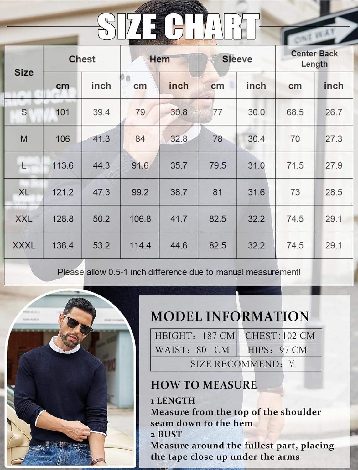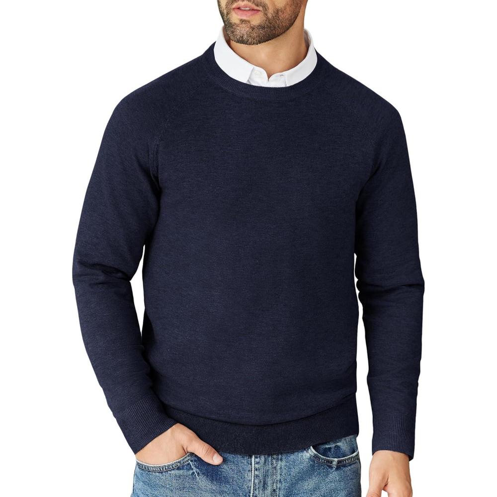 COOFANDY Men’s Crewneck Sweater Casual Dress Pullover Sweater Slim Fit Lightweight Long Sleeve Raglan Sweaters(Navy Blue)
