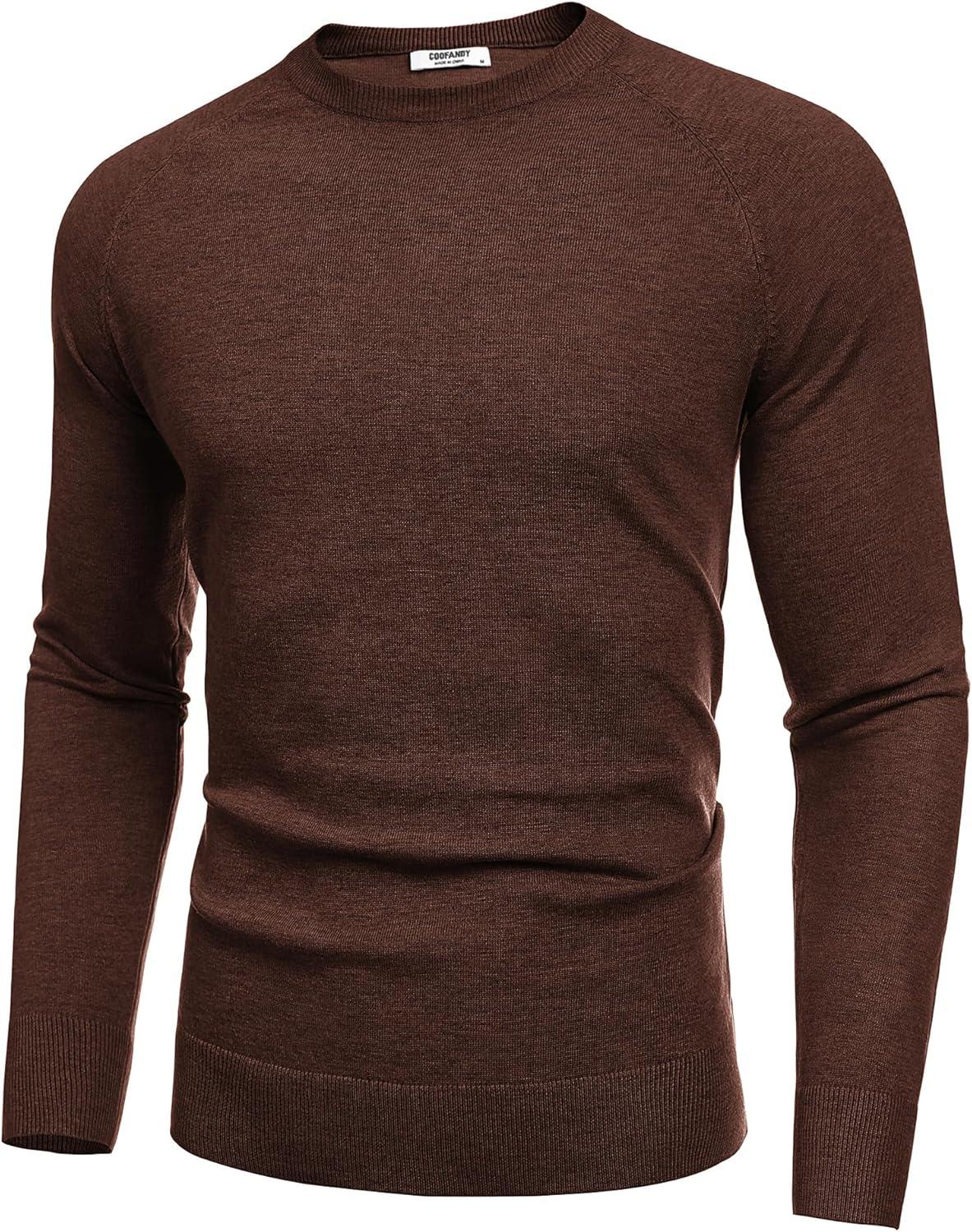 COOFANDY Men’s Crewneck Sweater Casual Dress Pullover Sweaters Slim Fit Lightweight Long Sleeve Raglan Sweaters(Brown)