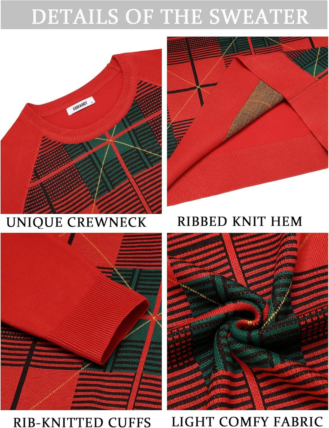 COOFANDY Men’s Crewneck Sweater Casual Dress Pullover Sweaters Slim Fit Lightweight Long Sleeve Raglan Sweaters(Christmas Red & Green)