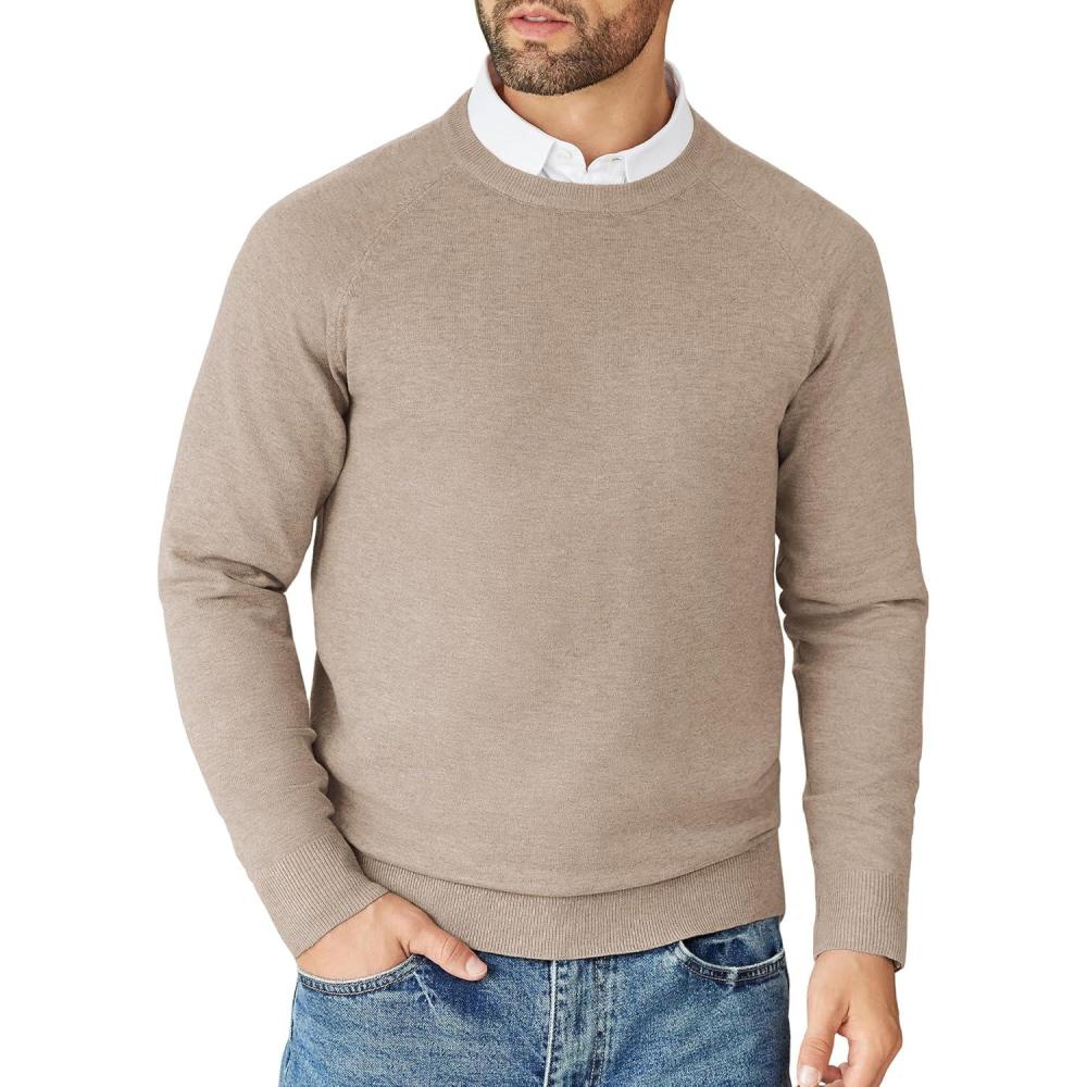 COOFANDY Men’s Crewneck Sweater Casual Dress Pullover Sweaters Slim Fit Lightweight Long Sleeve Raglan Sweaters(Light Coffee)