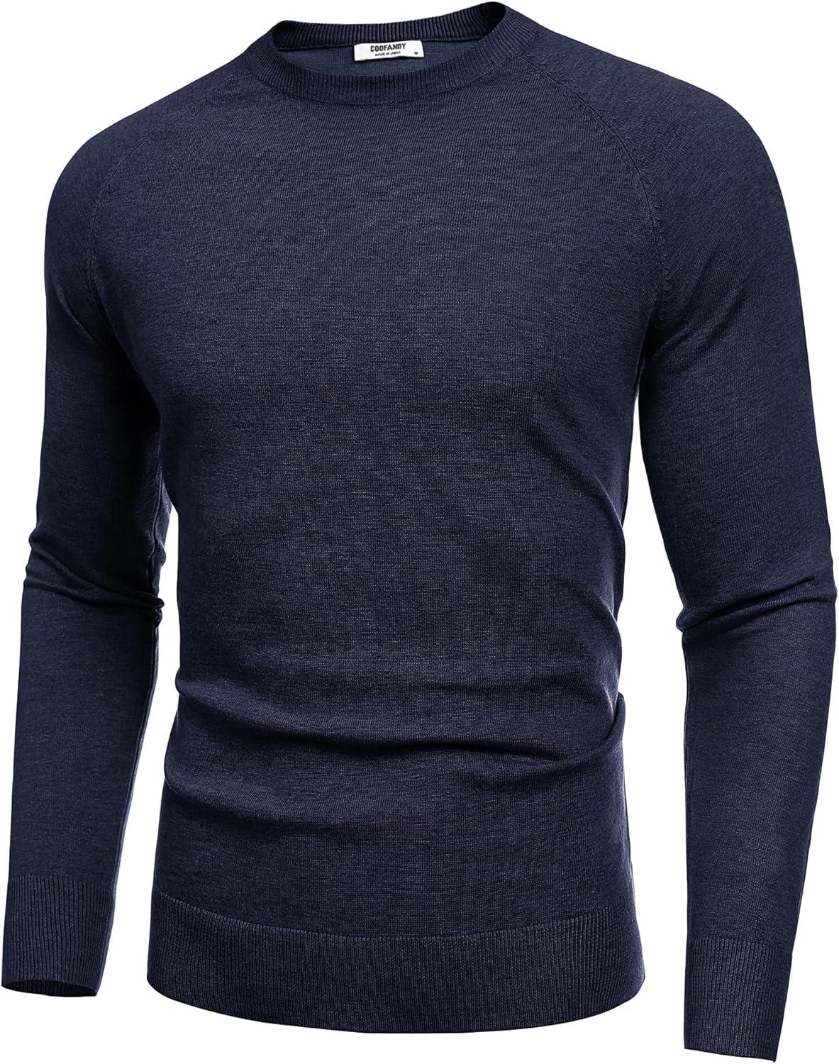 COOFANDY Men’s Crewneck Sweater Casual Dress Pullover Sweaters Slim Fit Lightweight Long Sleeve Raglan Sweaters(Navy Blue)