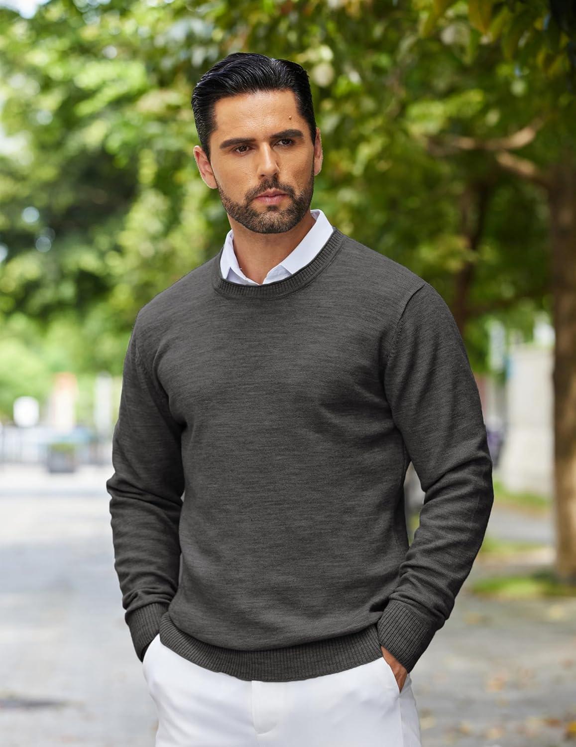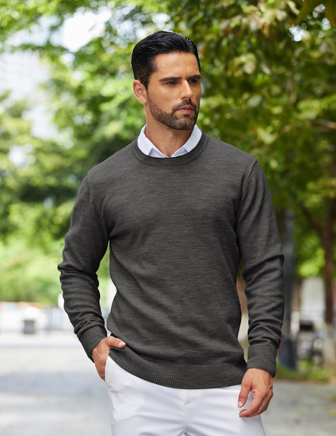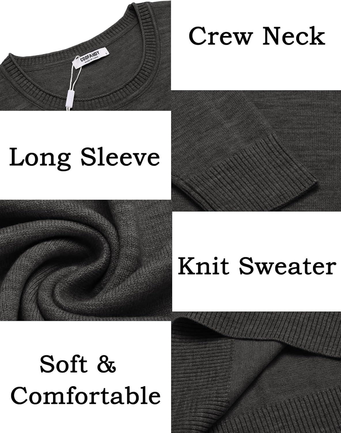 COOFANDY Mens Crewneck Sweater Pullover Knit Sweater Lightweight Sweaters with Ribbing Edge(Dark Gray)