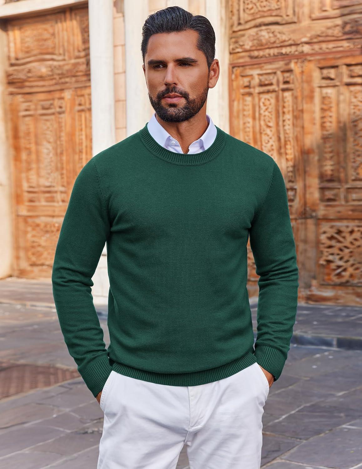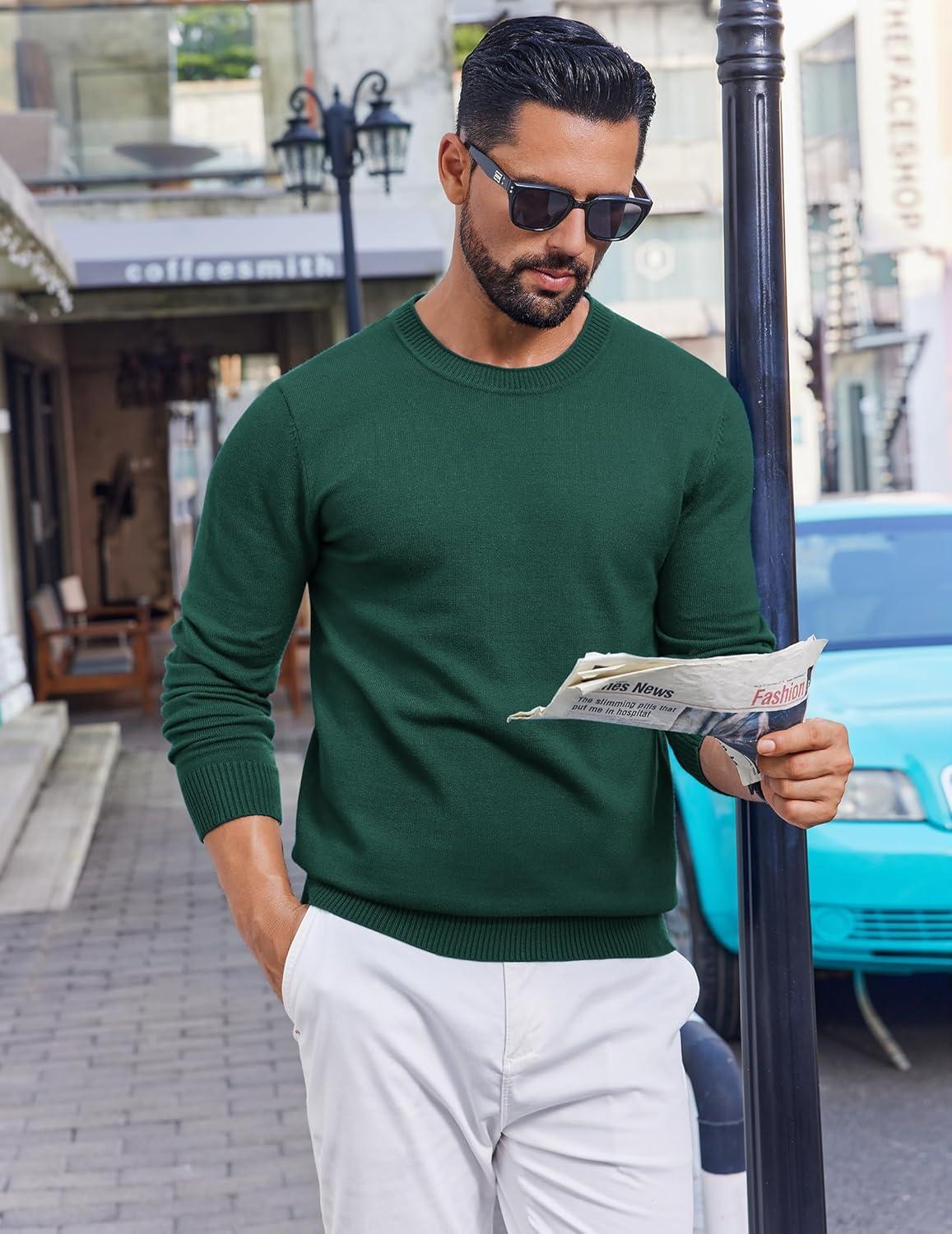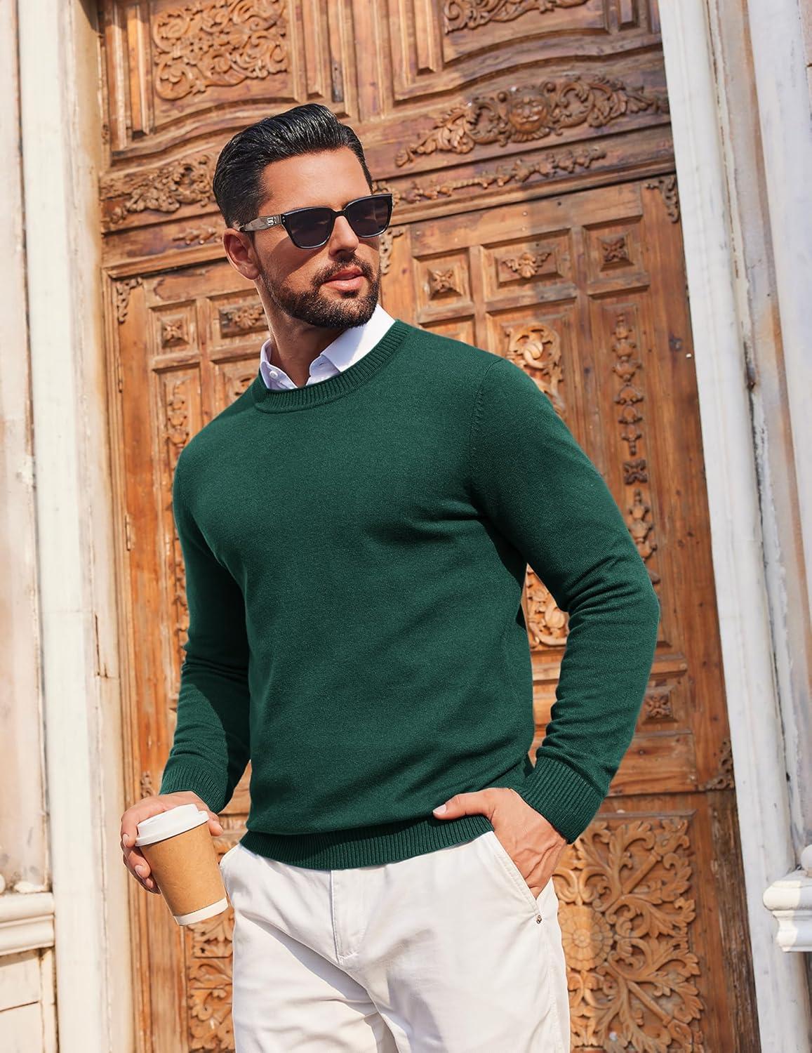COOFANDY Mens Crewneck Sweater Pullover Knit Sweater Lightweight Sweaters with Ribbing Edge(Green)