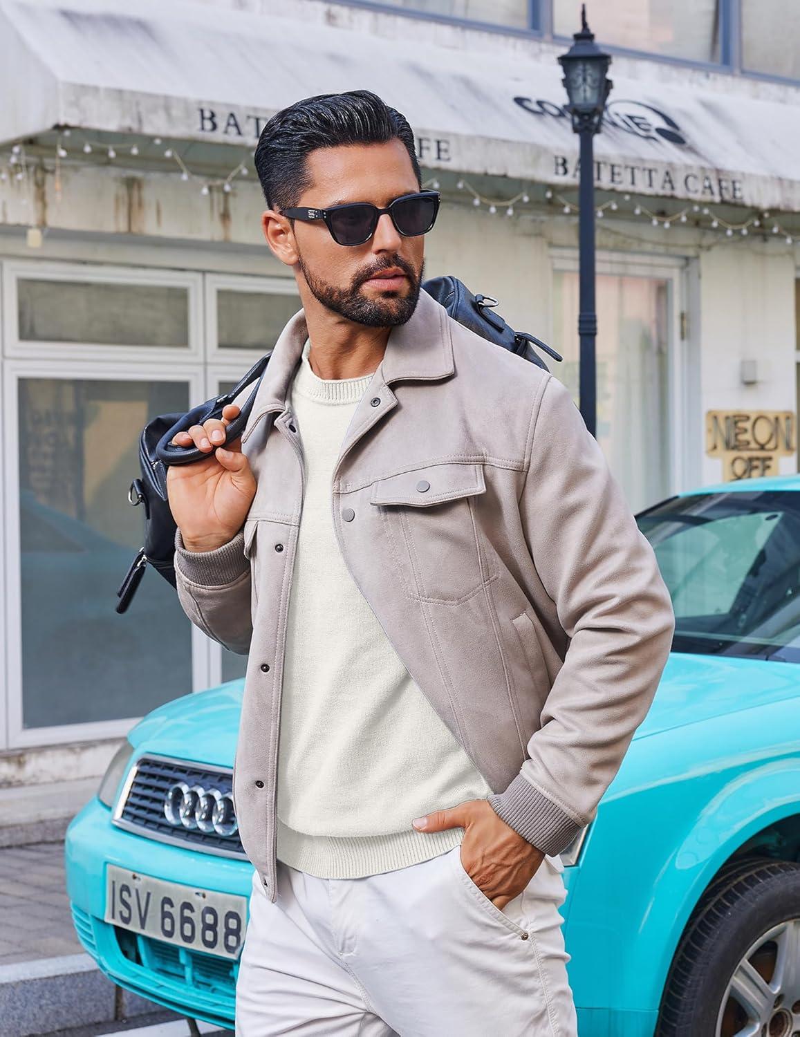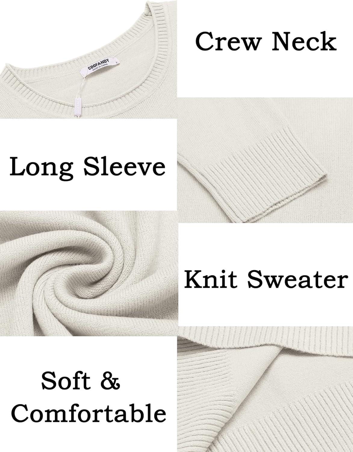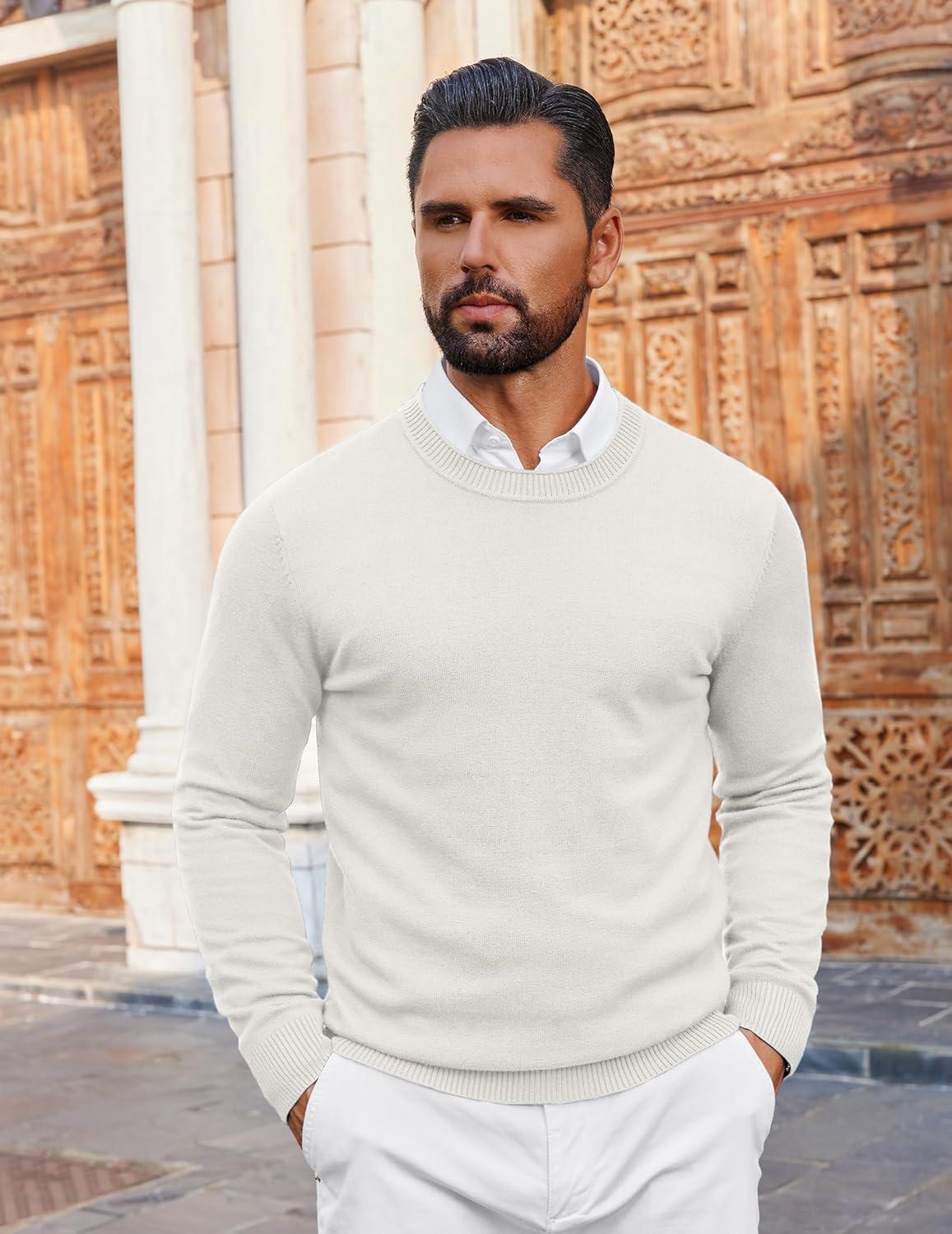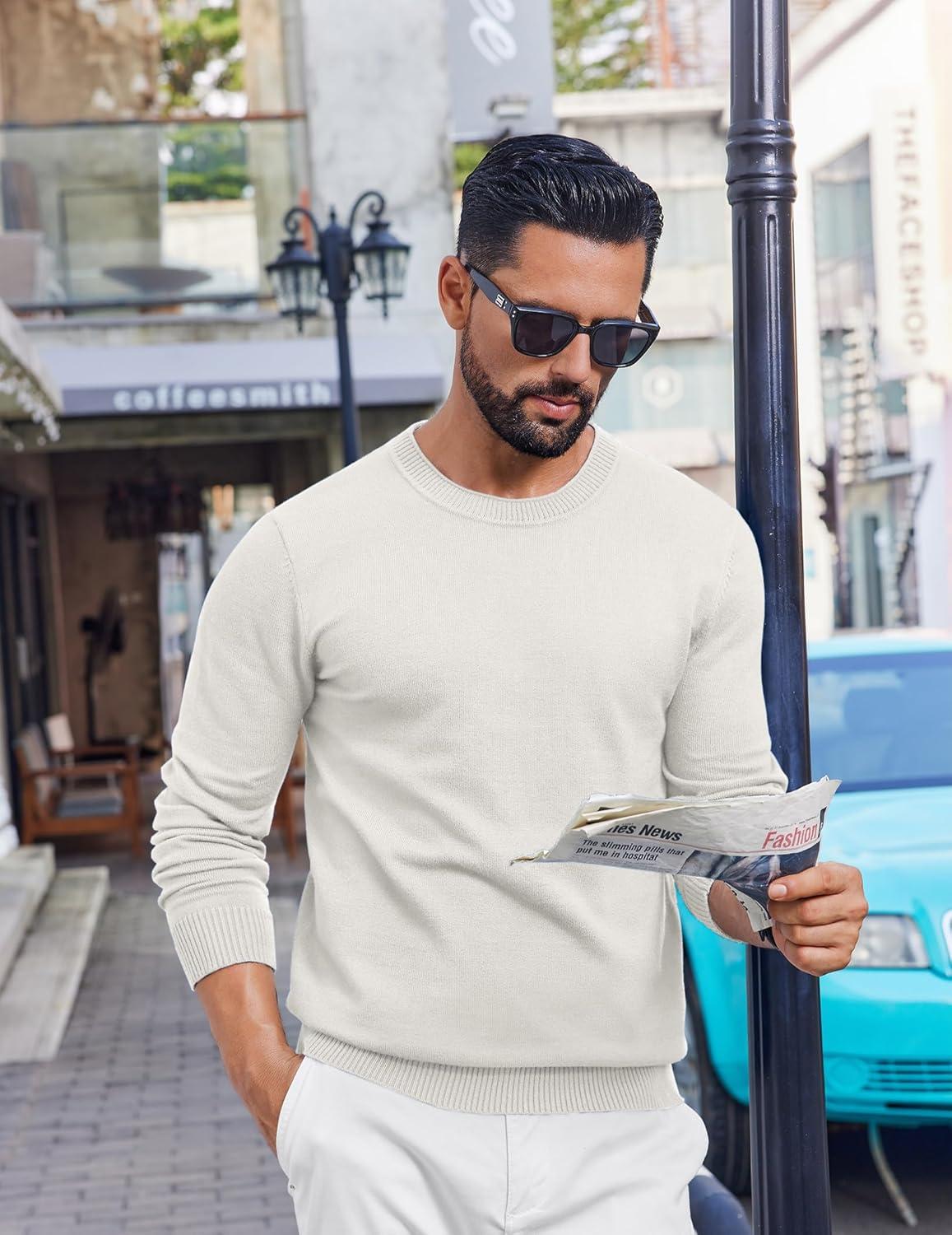 COOFANDY Mens Crewneck Sweater Pullover Knit Sweater Lightweight Sweaters with Ribbing Edge(White)