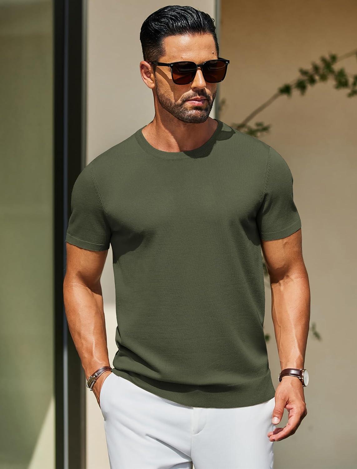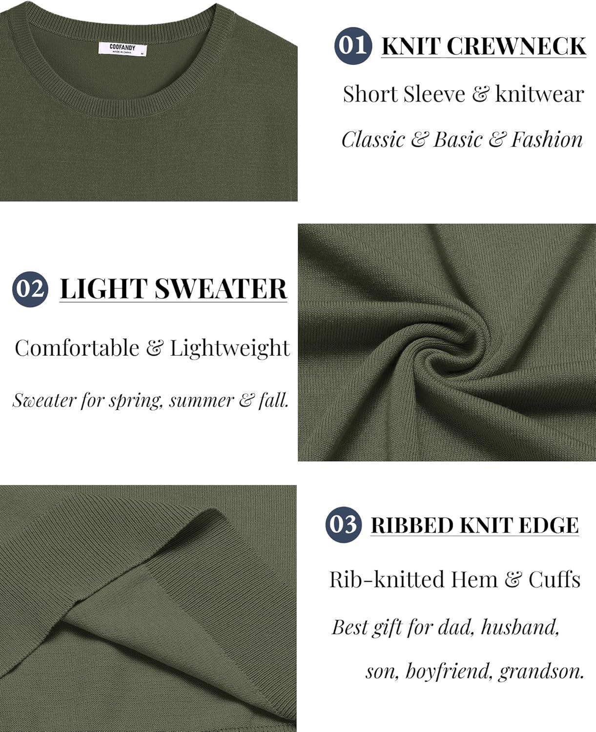 COOFANDY Men’s Crewneck Sweater Short Sleeve Casual Basic Tops Classic Fashion Knit Pullover Tees(Army Green)