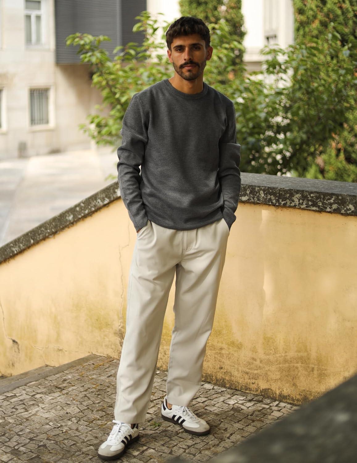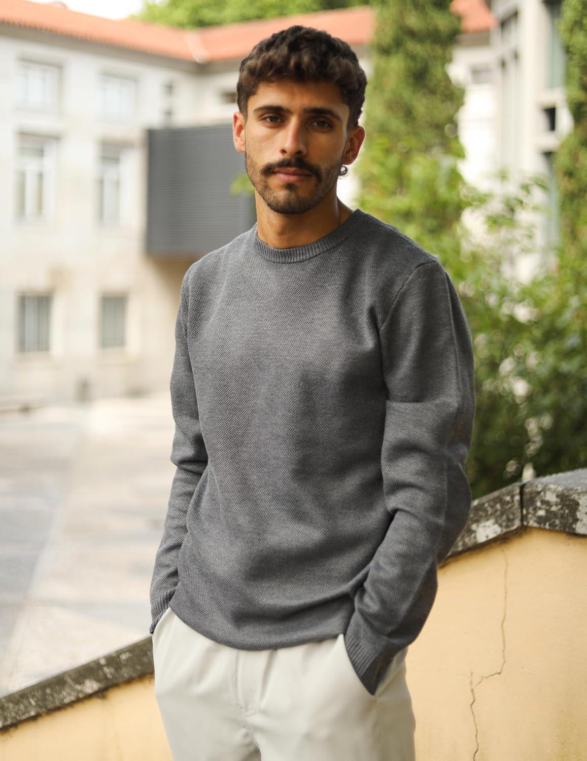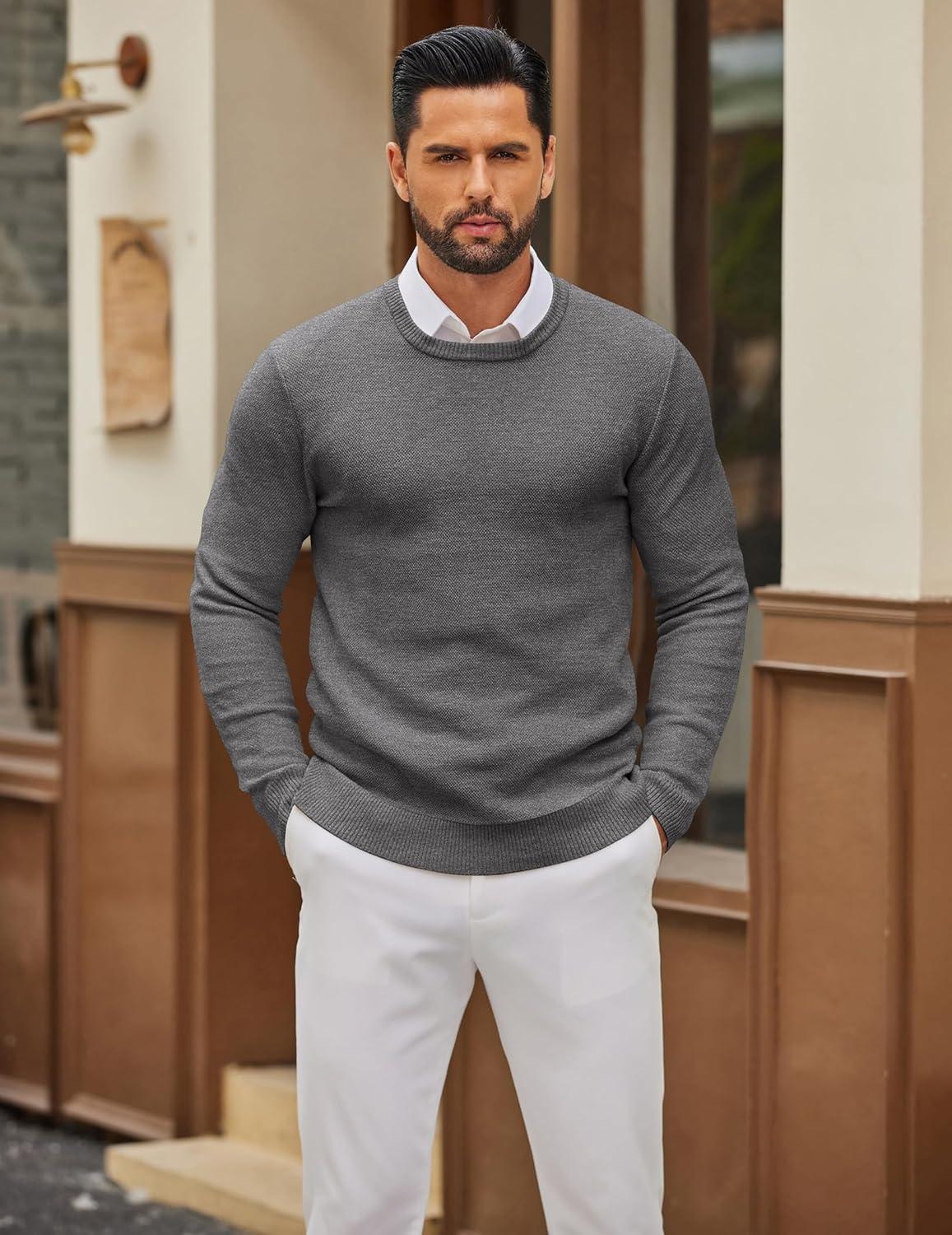 COOFANDY Mens Crewneck Sweater Slim Fit Lightweight Knit Pullover Casual Dress Crew Neck Pullover Sweaters(Dark Grey)