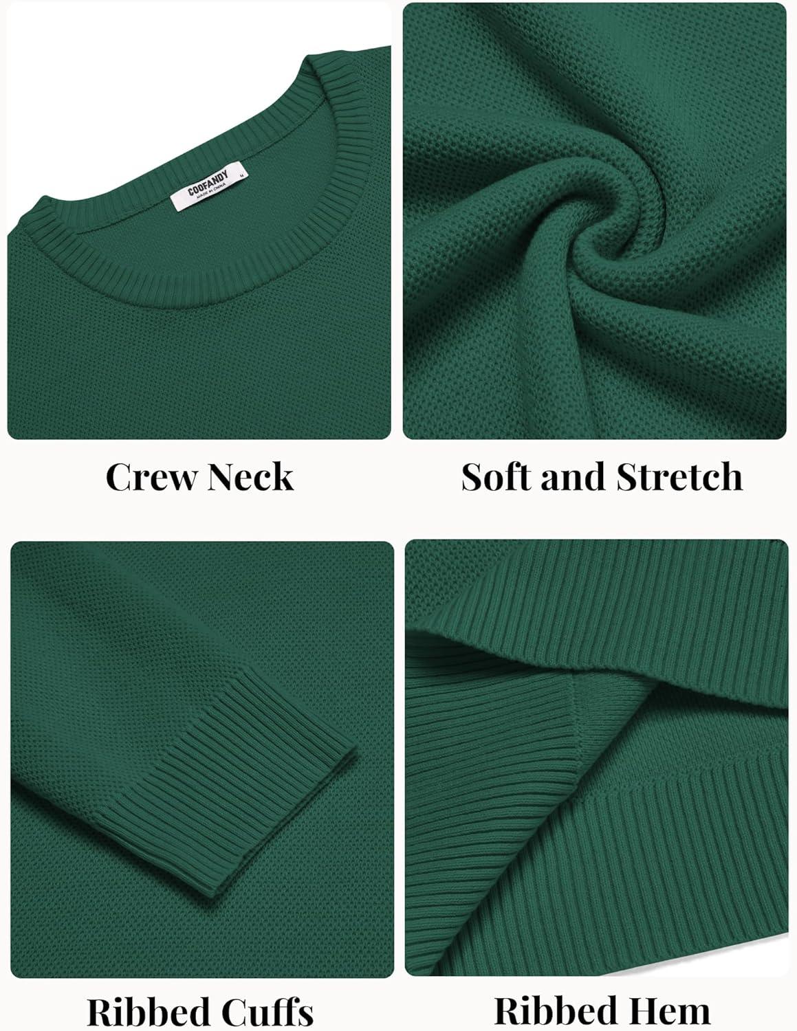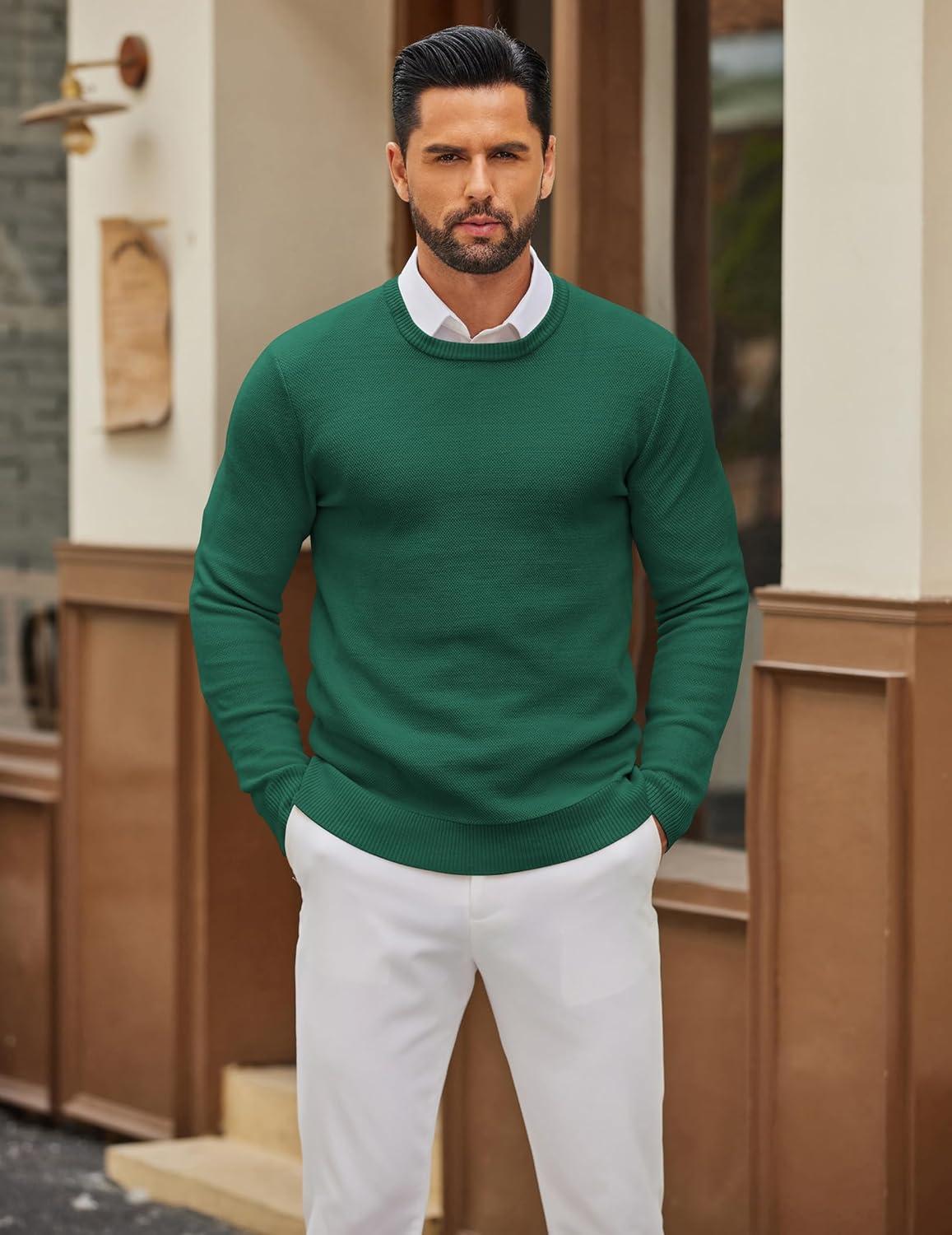 COOFANDY Mens Crewneck Sweater Slim Fit Lightweight Knit Pullover Casual Dress Crew Neck Pullover Sweaters(Green)