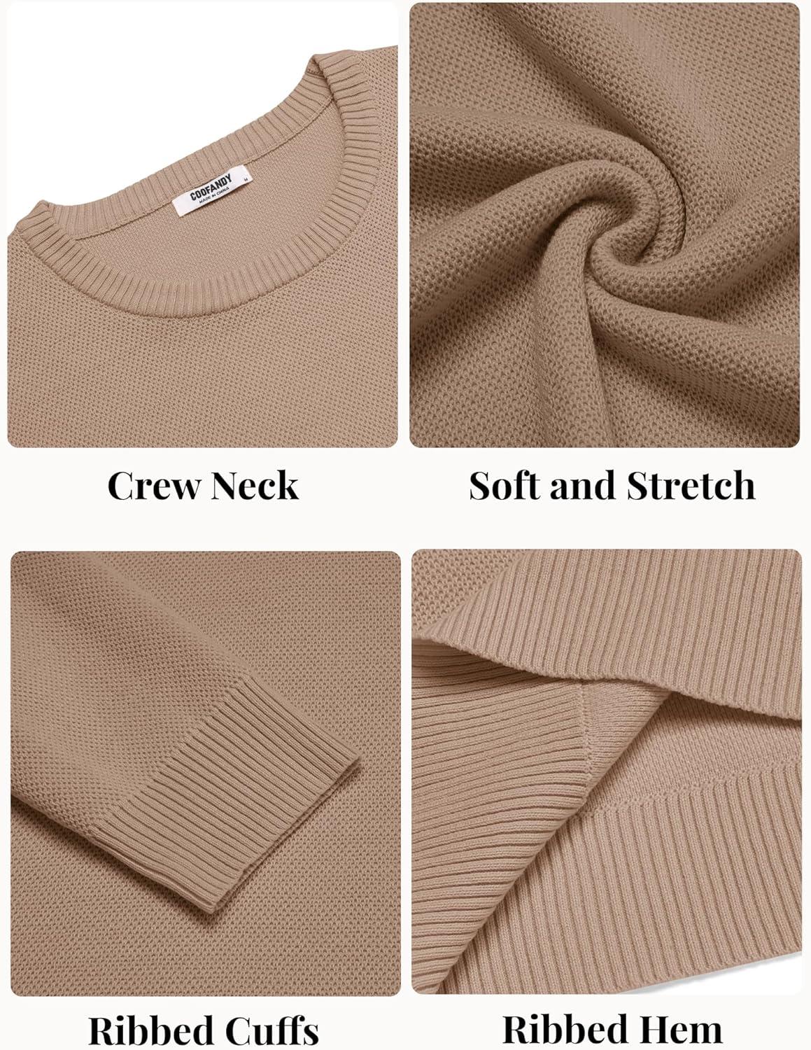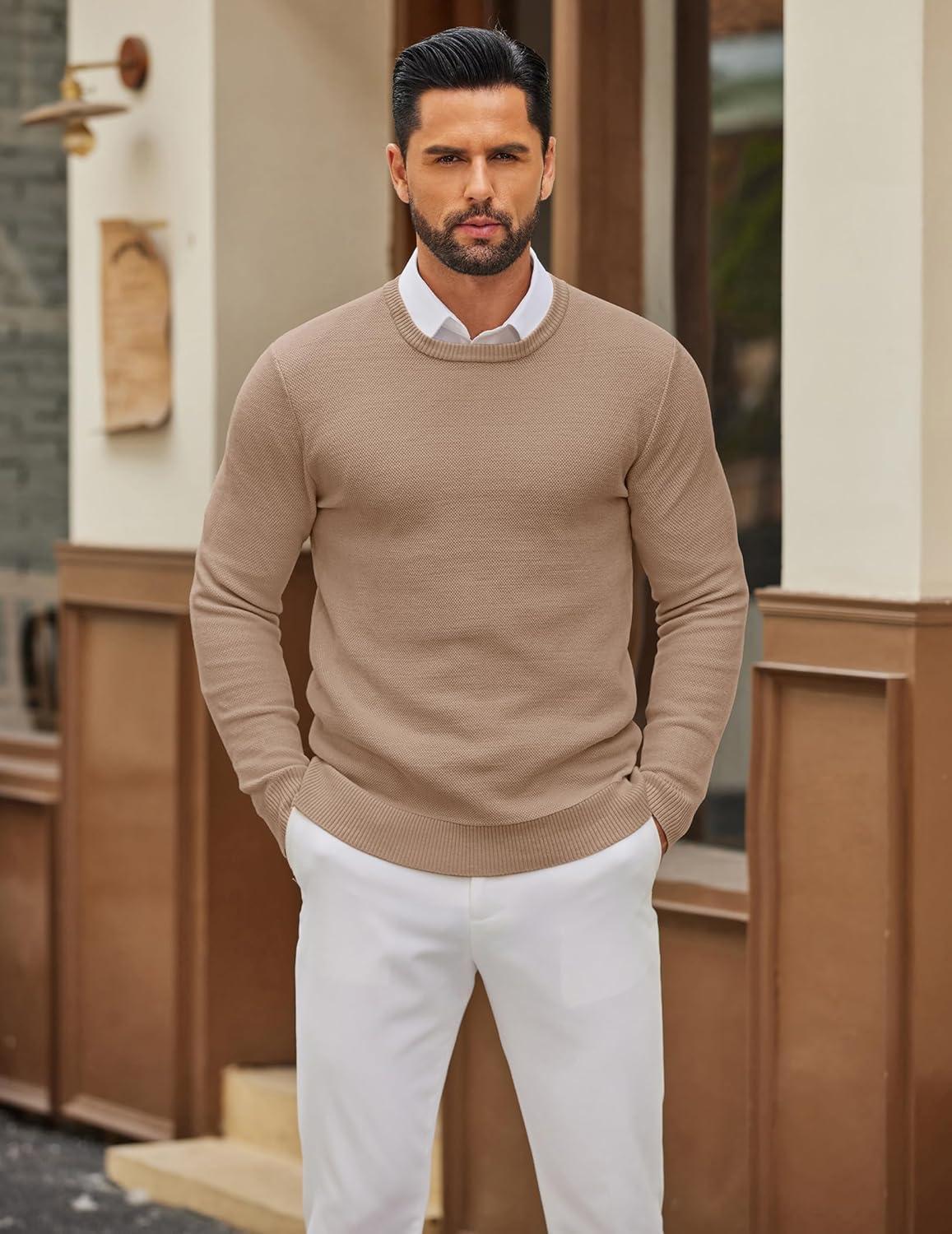 COOFANDY Mens Crewneck Sweater Slim Fit Lightweight Knit Pullover Casual Dress Crew Neck Pullover Sweaters(Khaki)
