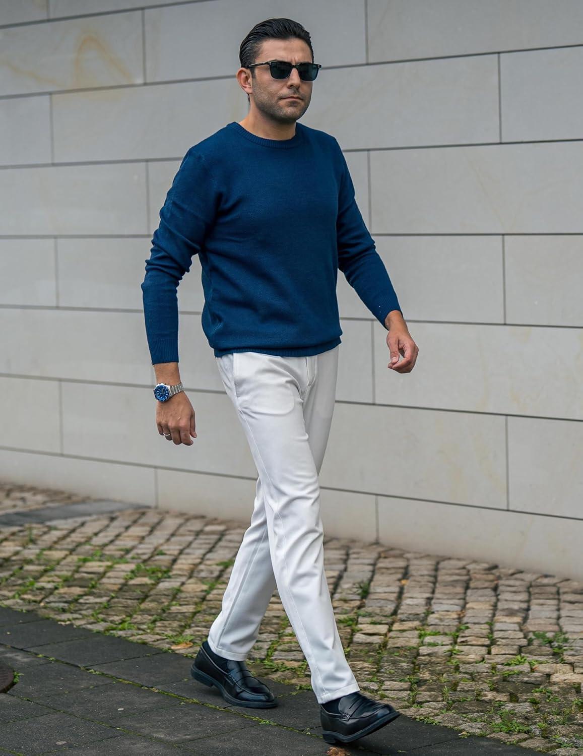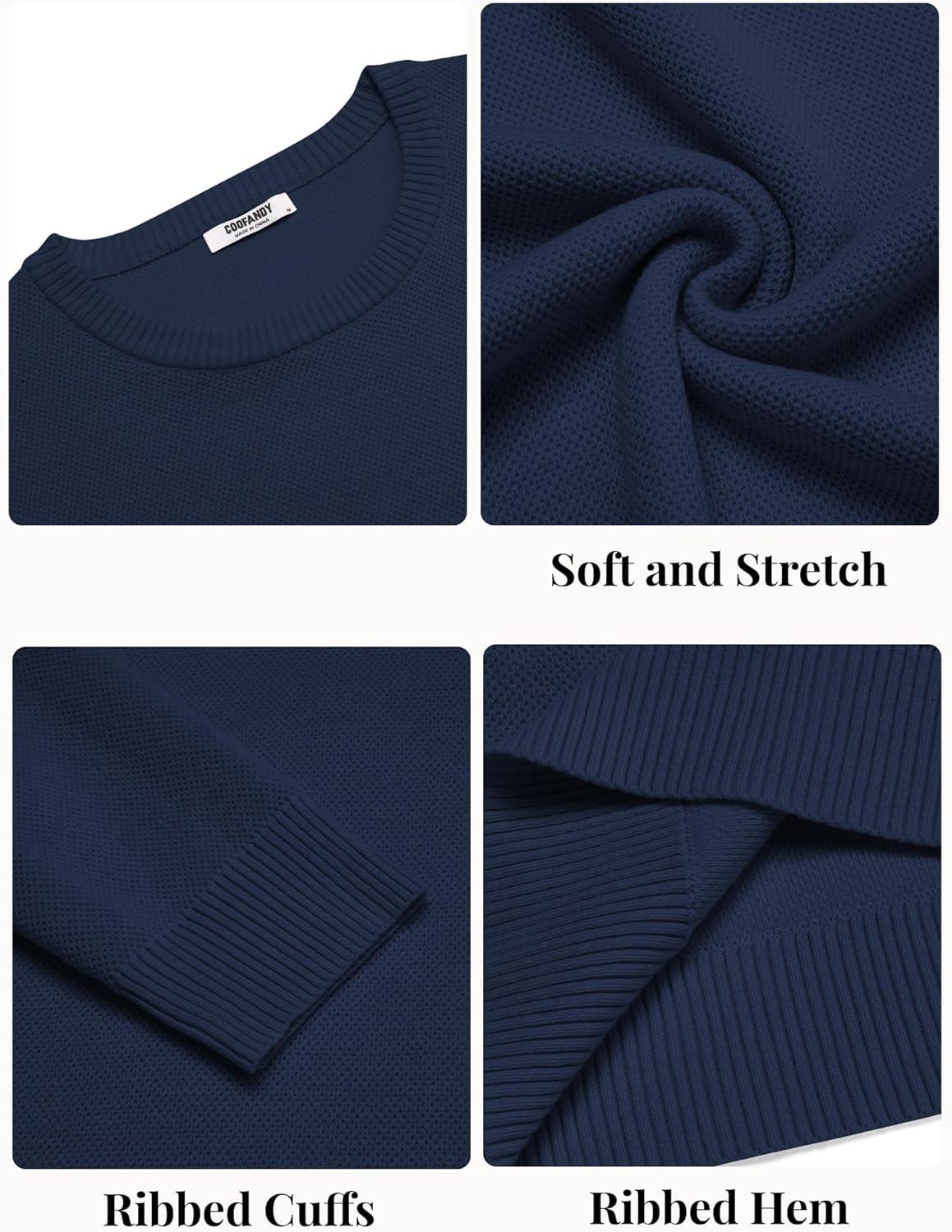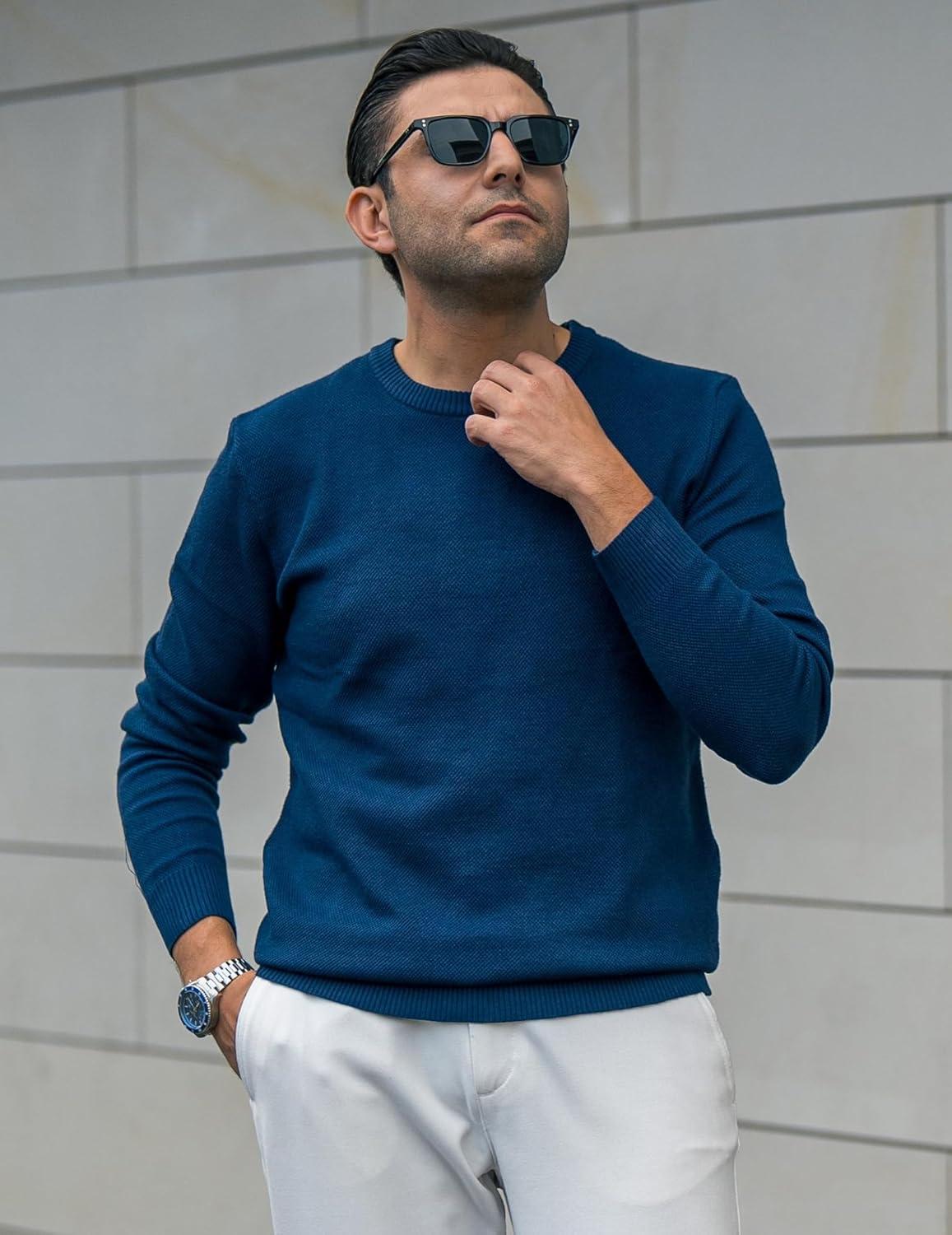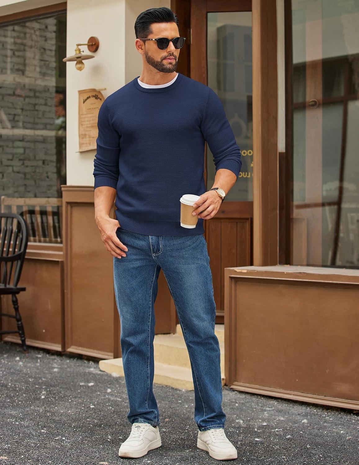 COOFANDY Mens Crewneck Sweater Slim Fit Lightweight Knit Pullover Casual Dress Crew Neck Pullover Sweaters(Navy Blue)