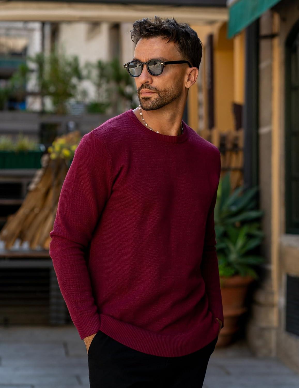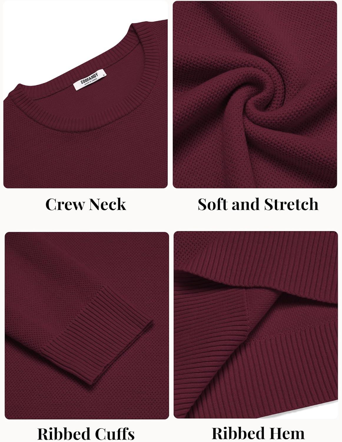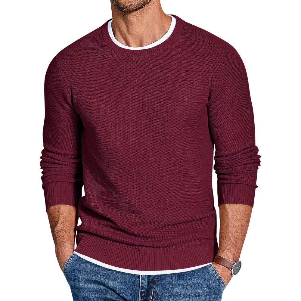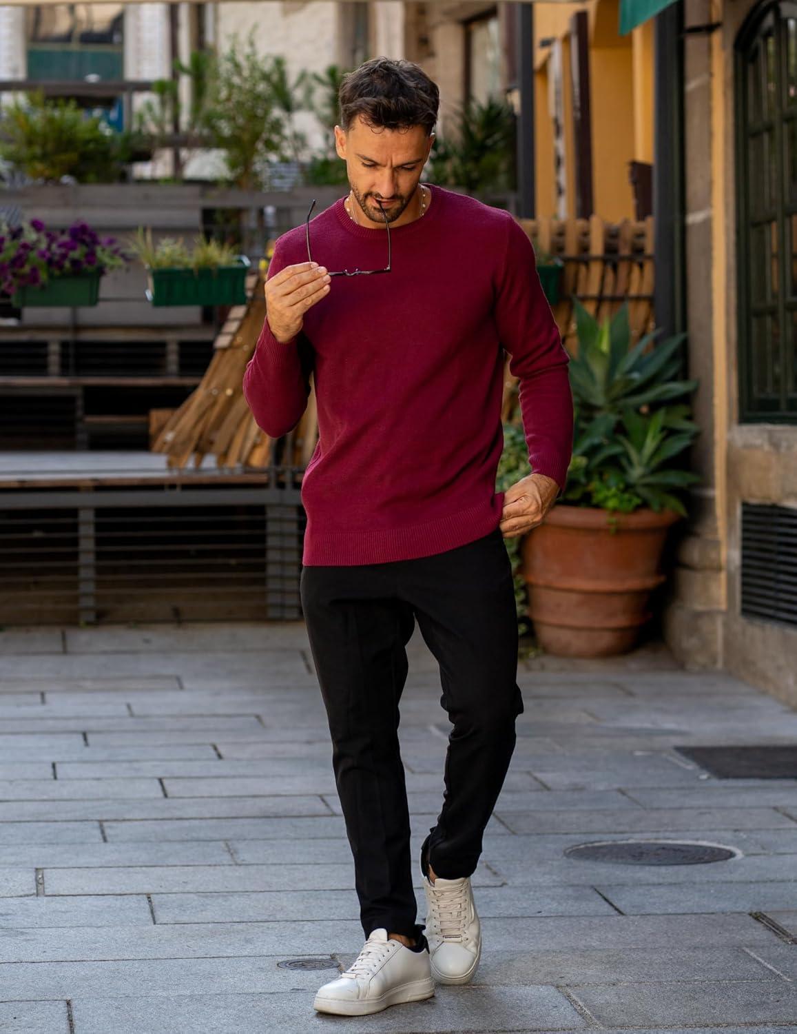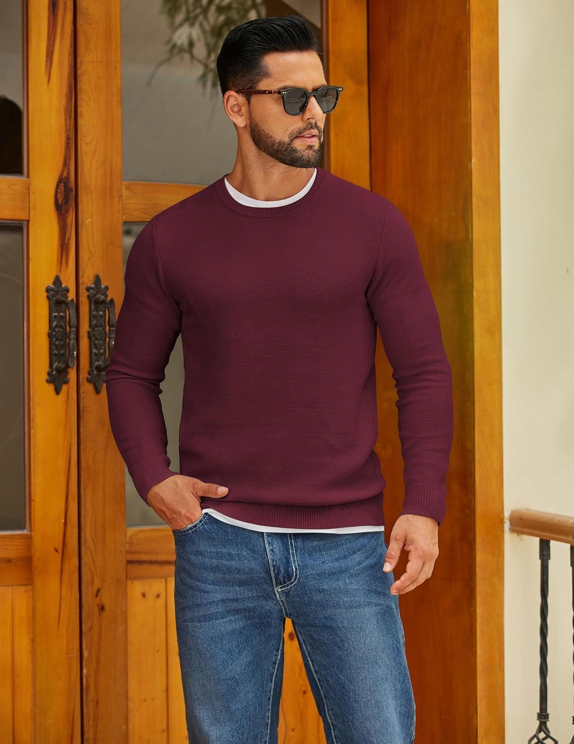 COOFANDY Mens Crewneck Sweater Slim Fit Lightweight Knit Pullover Casual Dress Crew Neck Pullover Sweaters(Wine Red)