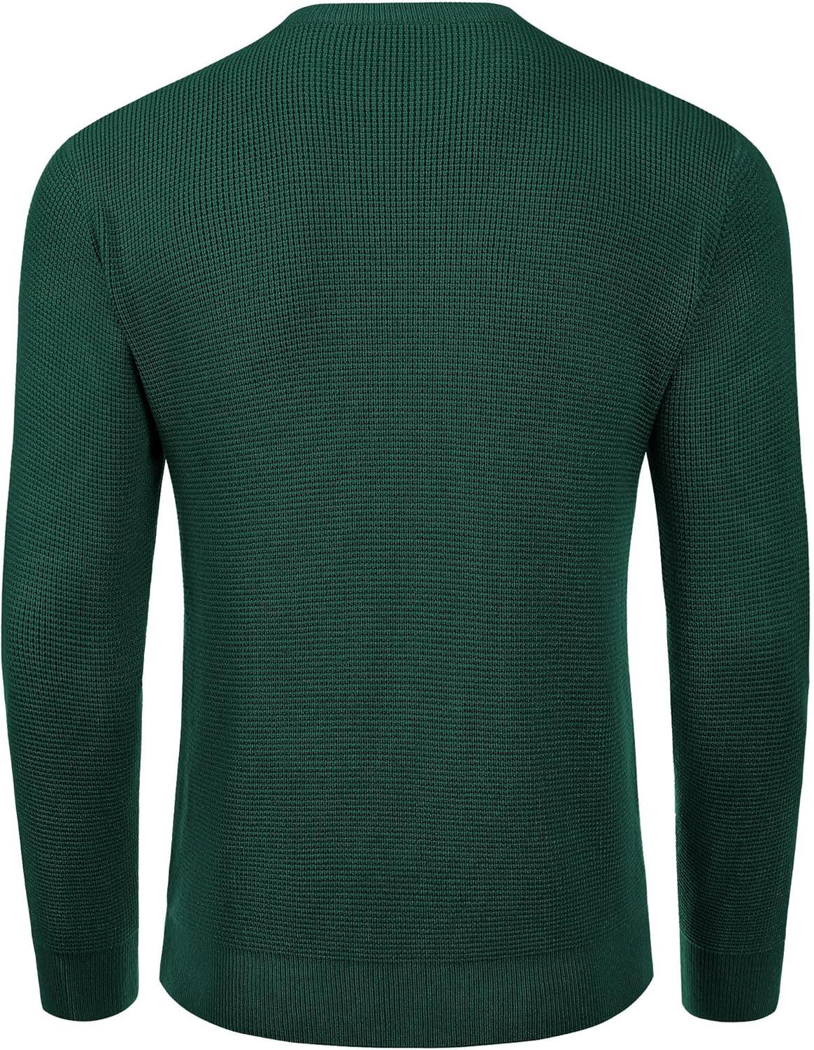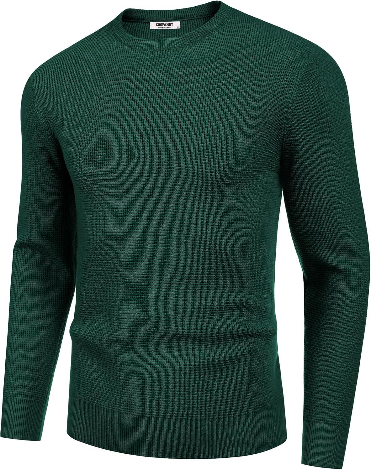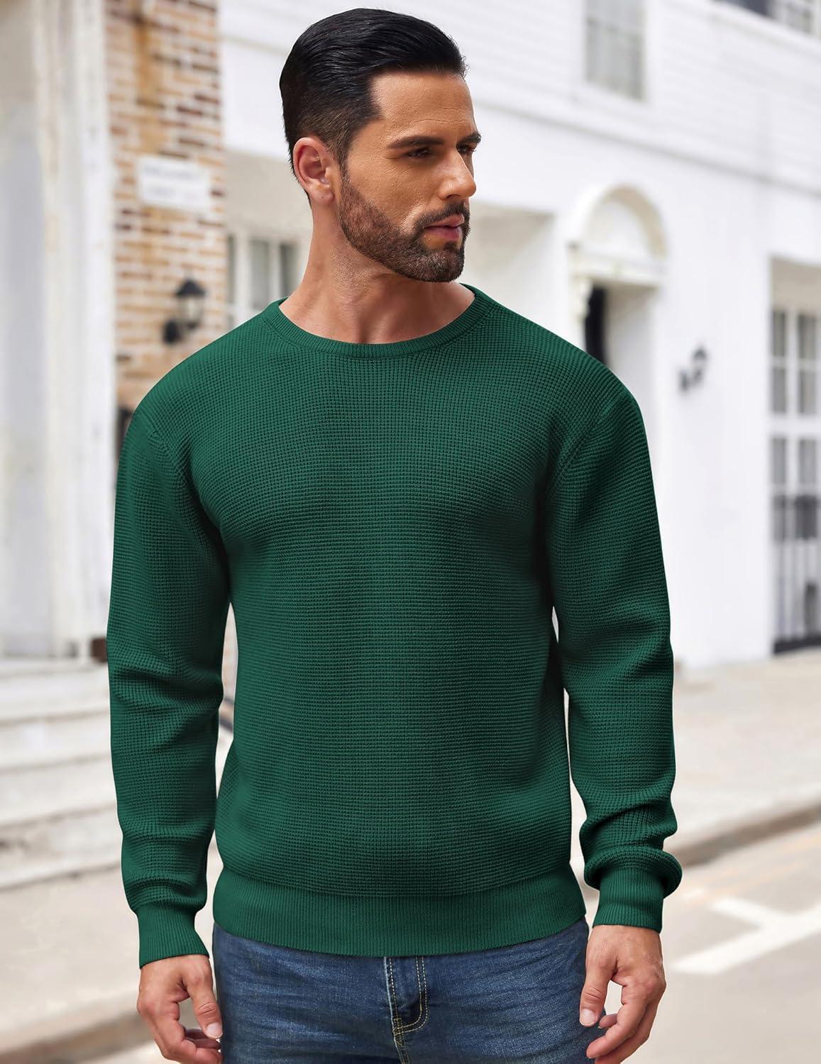 COOFANDY Men’s Crewneck Sweater Waffle Textured Pullover Sweaters Soft Midweight Knitted Sweaters(Green)
