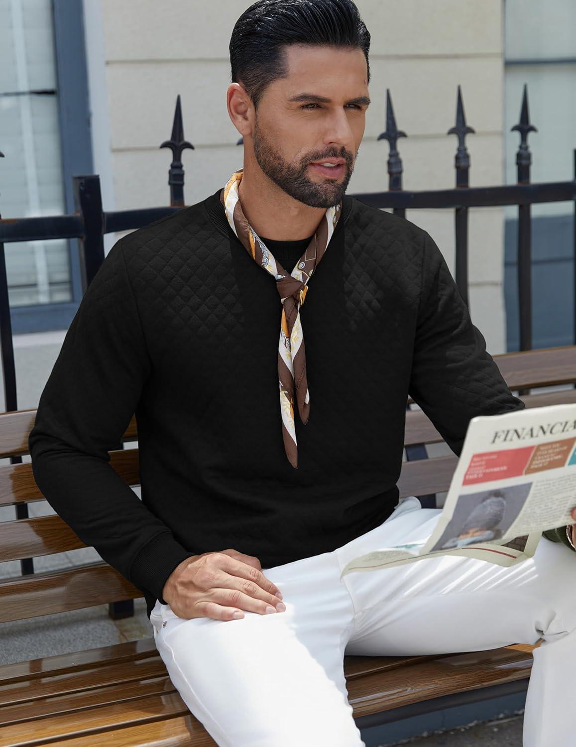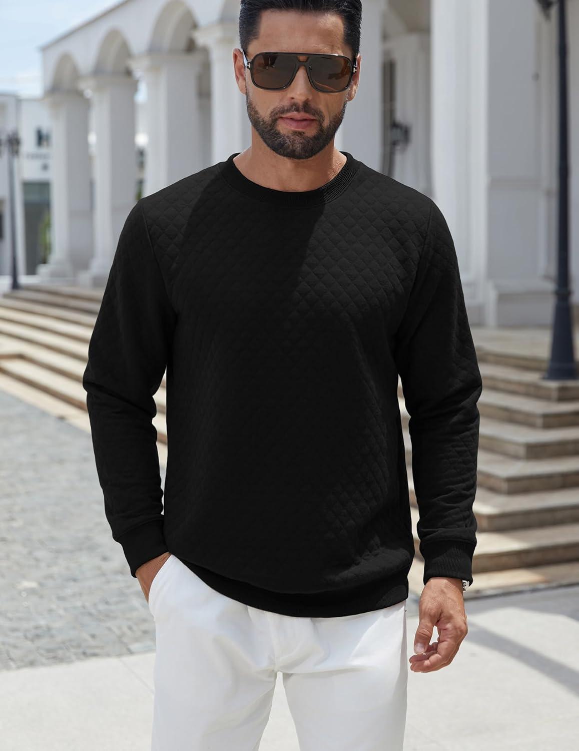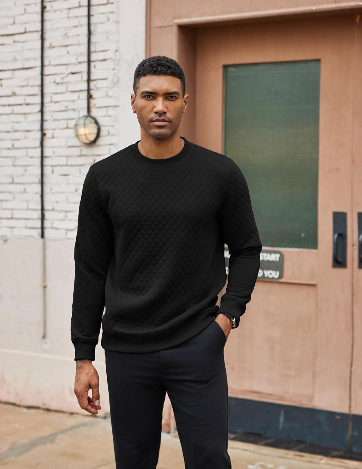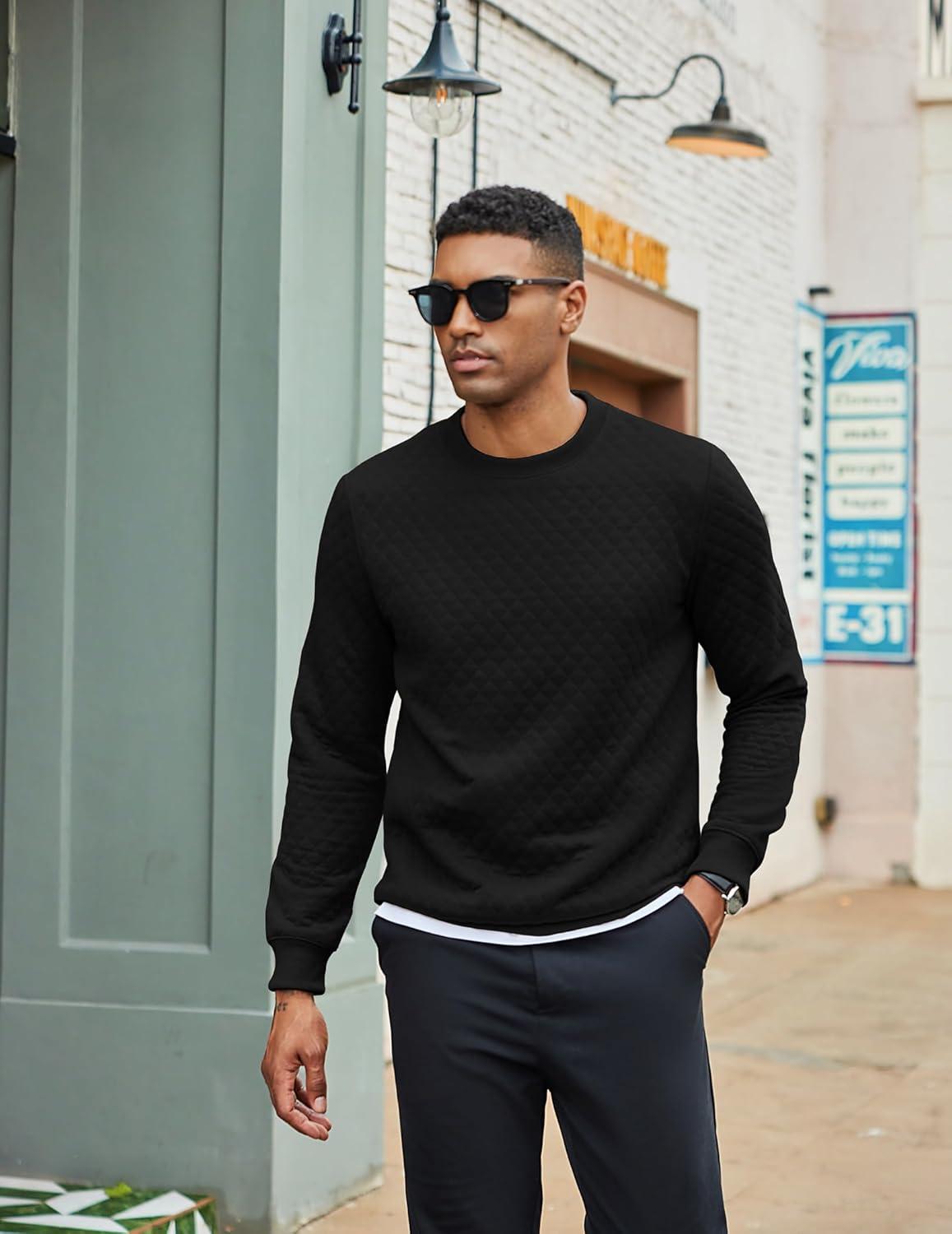 COOFANDY Men’s Crewneck Sweatshirt Geometric Texture Casual Long Sleeve Sweatshirts Fashion Pullover Shirts(Black)