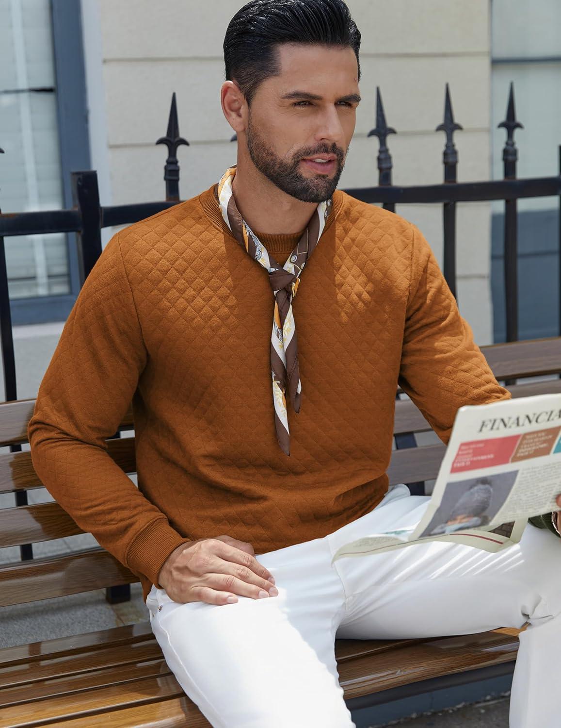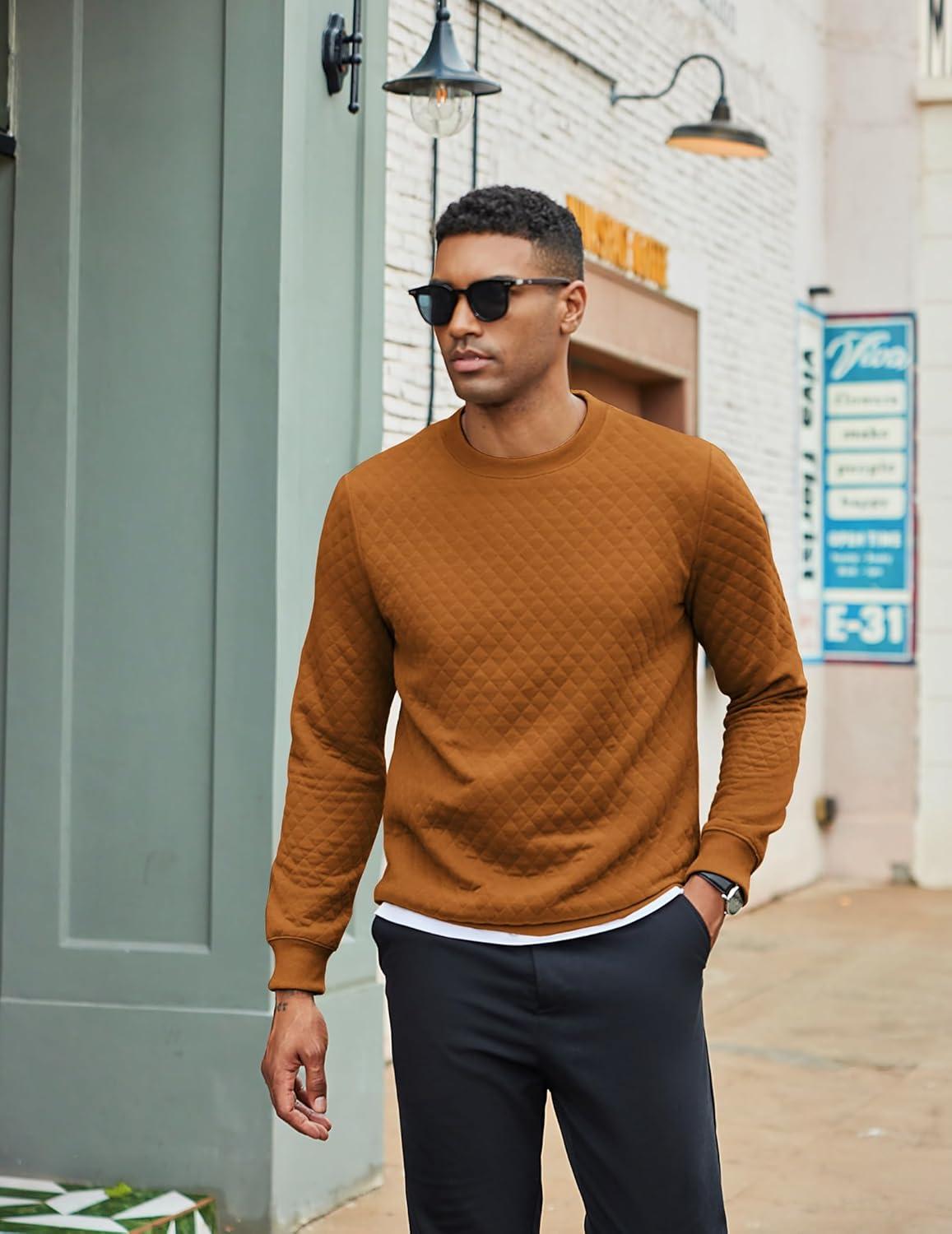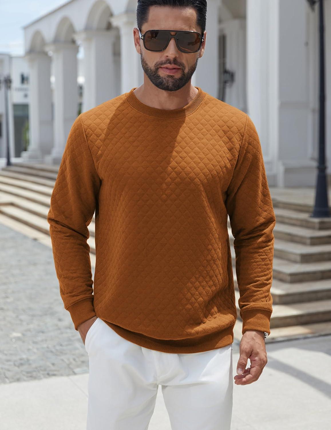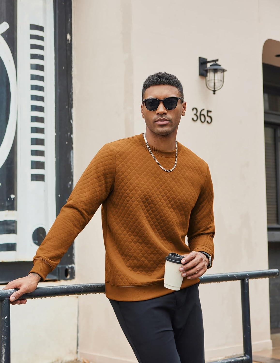COOFANDY Men’s Crewneck Sweatshirt Geometric Texture Casual Long Sleeve Sweatshirts Fashion Pullover Shirts(Brown)