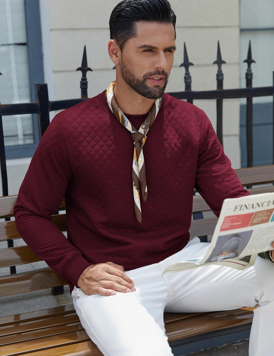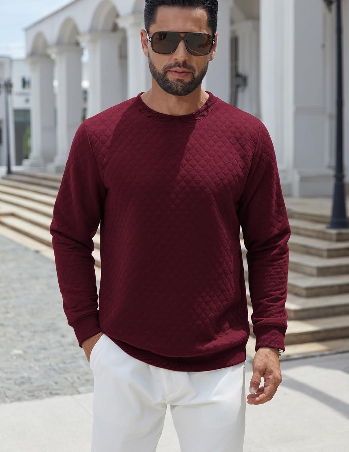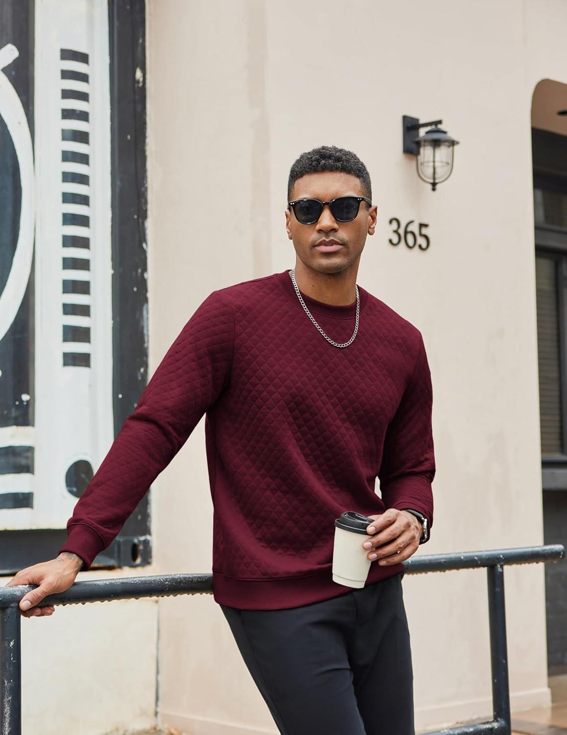 COOFANDY Men’s Crewneck Sweatshirt Geometric Texture Casual Long Sleeve Sweatshirts Fashion Pullover Shirts(Dark Red)