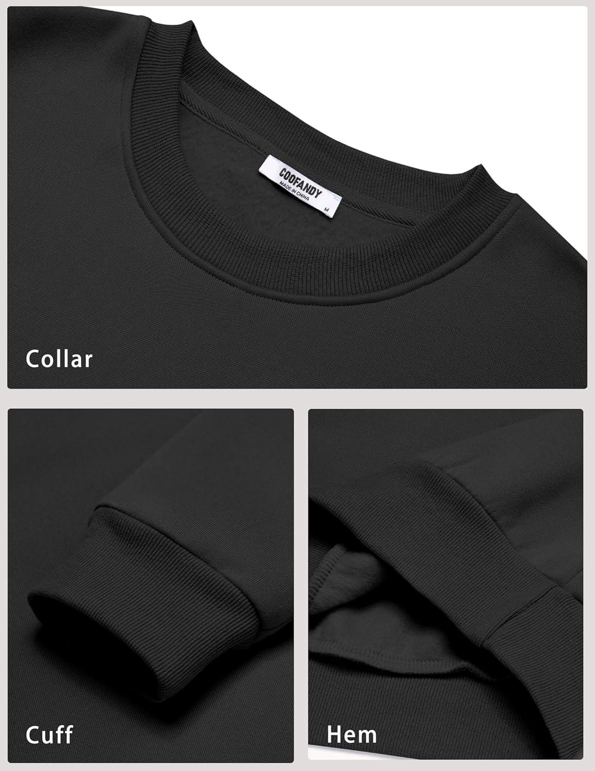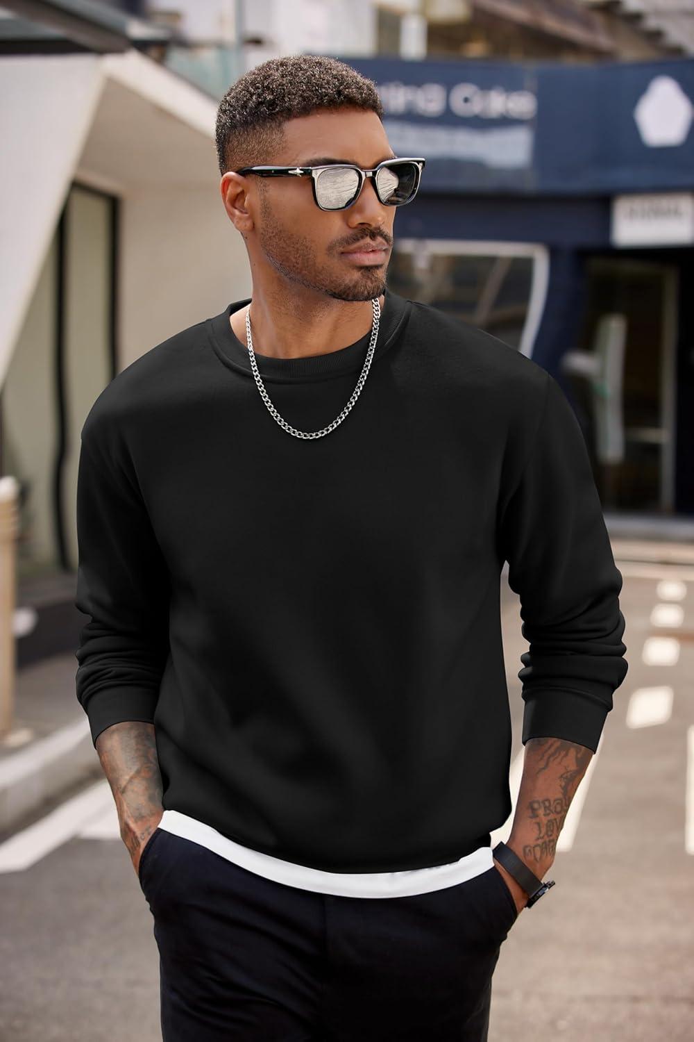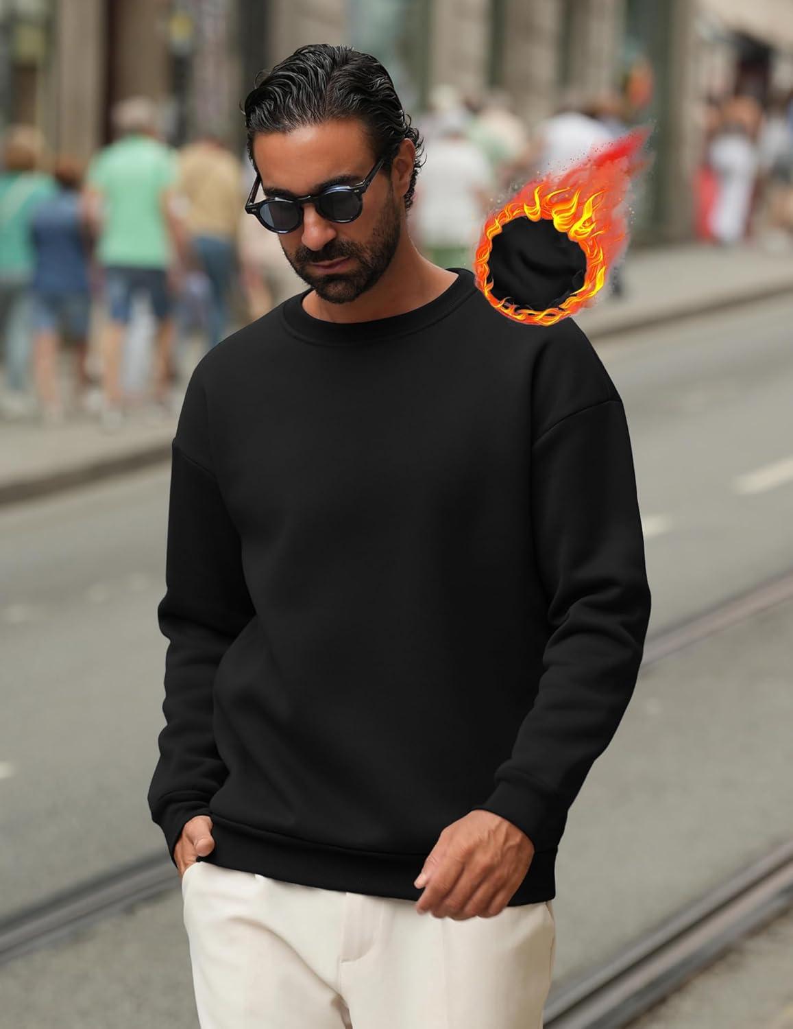COOFANDY Men’s Crewneck Sweatshirts Long Sleeves Fleece Sweatshirts Thermal Casual Pullover Shirt(Black)