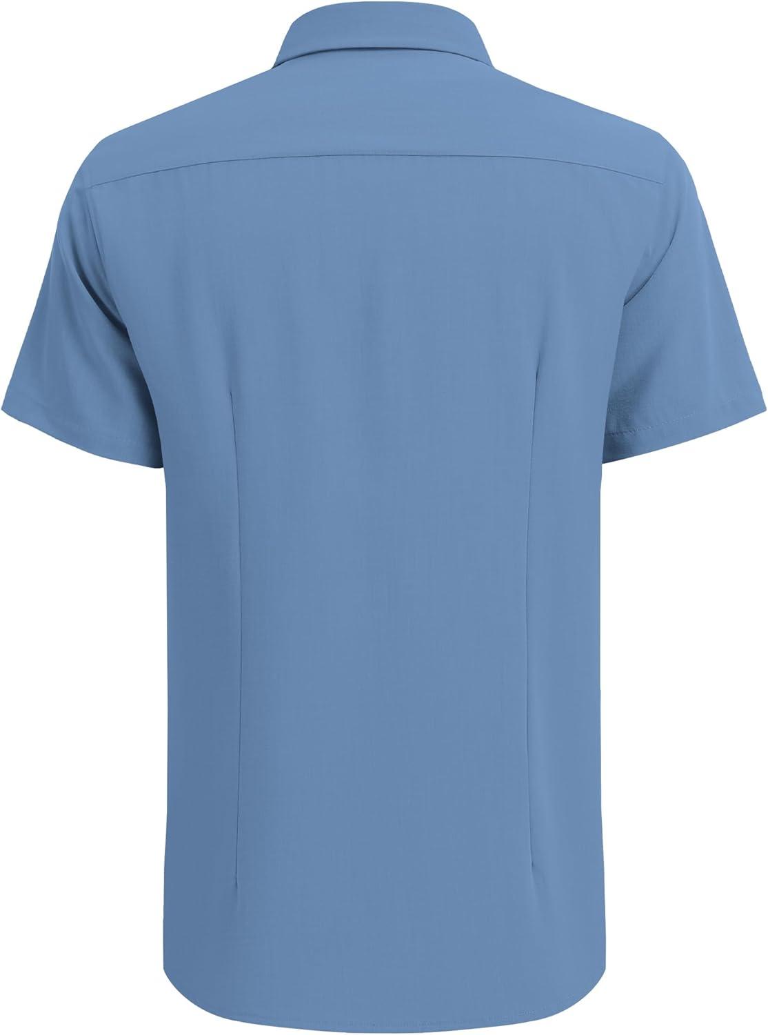 COOFANDY Men’s Cuban Guayabera Shirt Short Sleeve Button Down Shirts Casual Summer Beach Linen Shirts(Denim Blue)