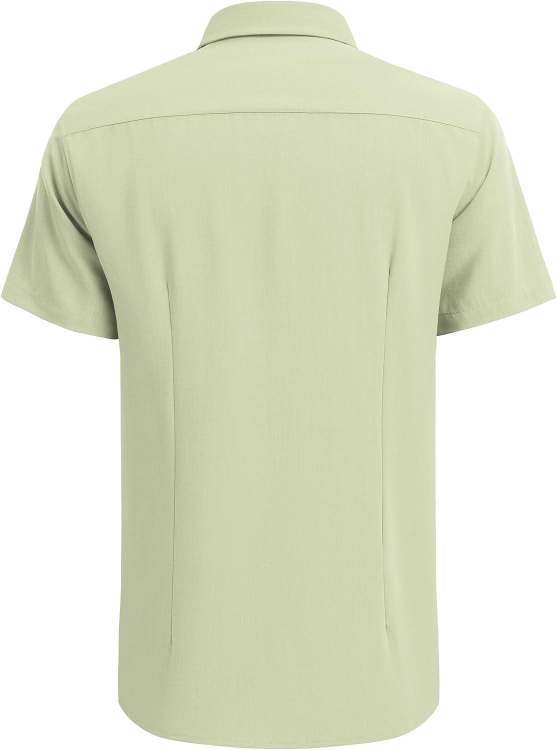 COOFANDY Men’s Cuban Guayabera Shirt Short Sleeve Button Down Shirts Casual Summer Beach Linen Shirts(Light Green)