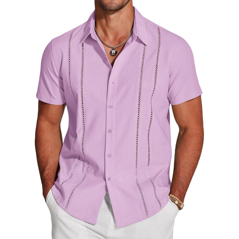 COOFANDY Men’s Cuban Guayabera Shirt Short Sleeve Button Down Shirts Casual Summer Beach Linen Shirts(Light Purple)