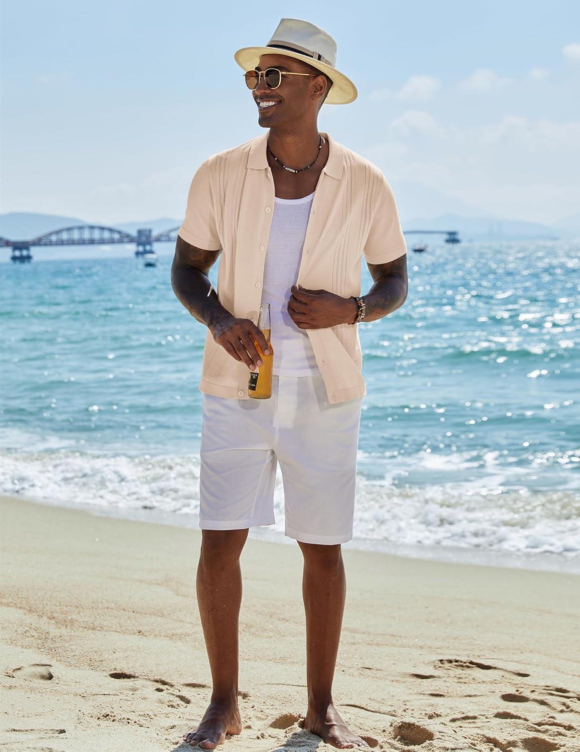 COOFANDY Mens Cuban Guayabera Shirt Short Sleeve Button Down Shirts Summer Beach Vacation Shirts(Apricot)