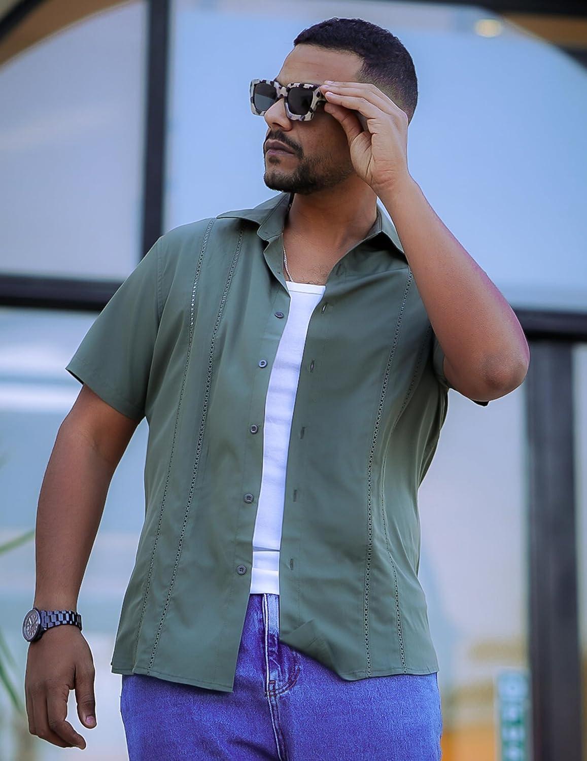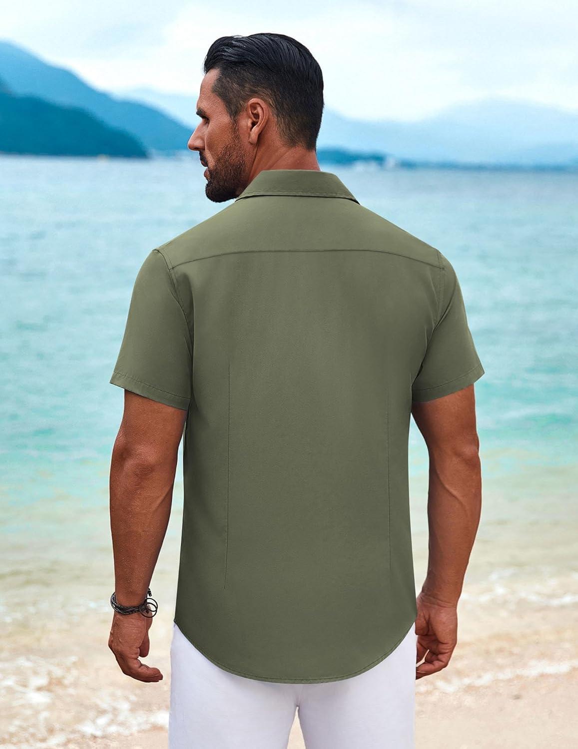 COOFANDY Mens Cuban Guayabera Shirt Short Sleeve Button Down Shirts Summer Beach Vacation Shirts(Army Green)