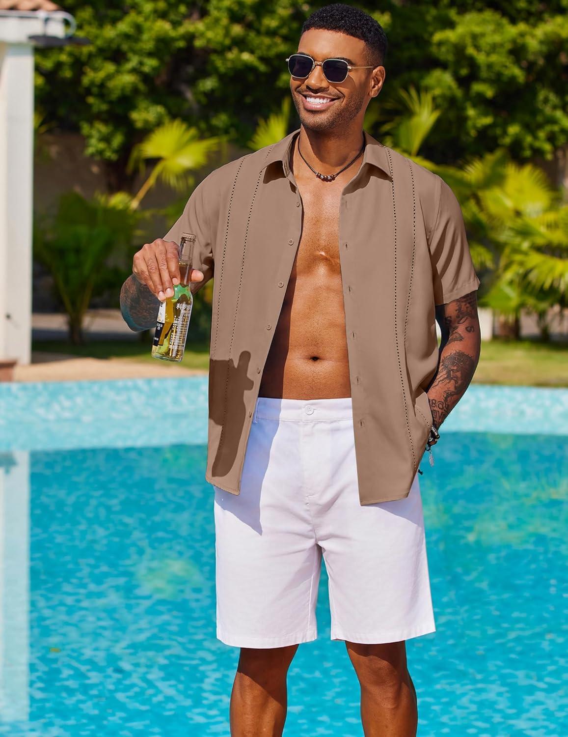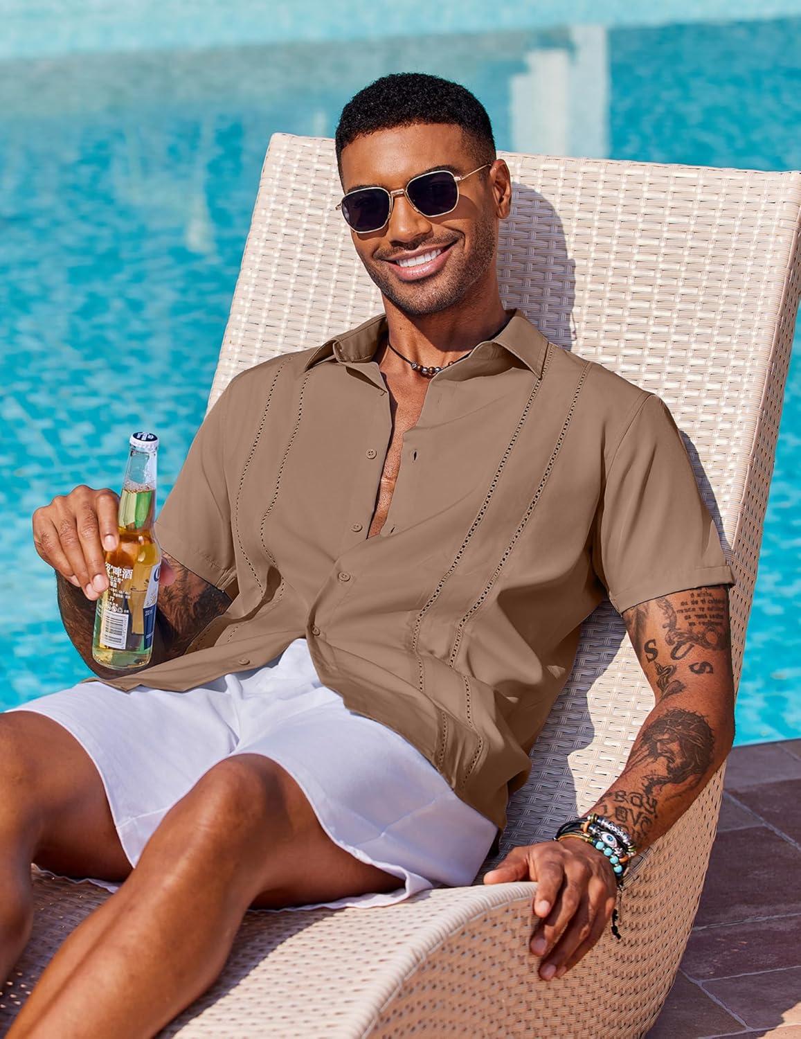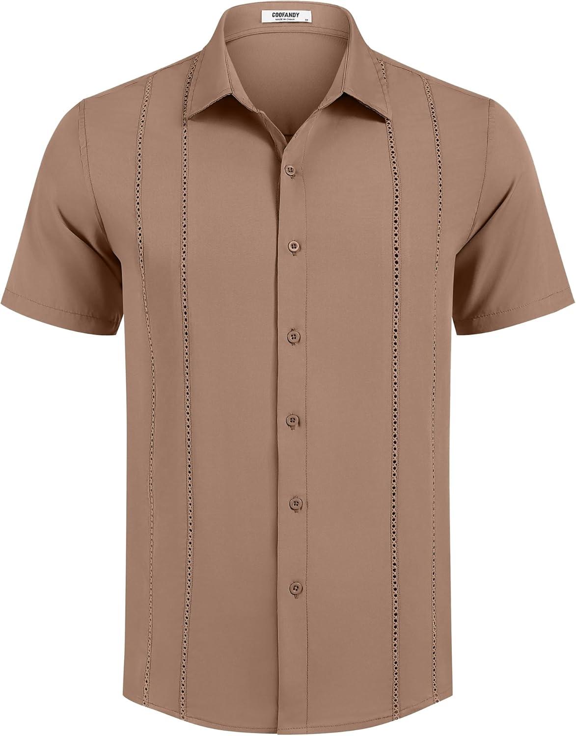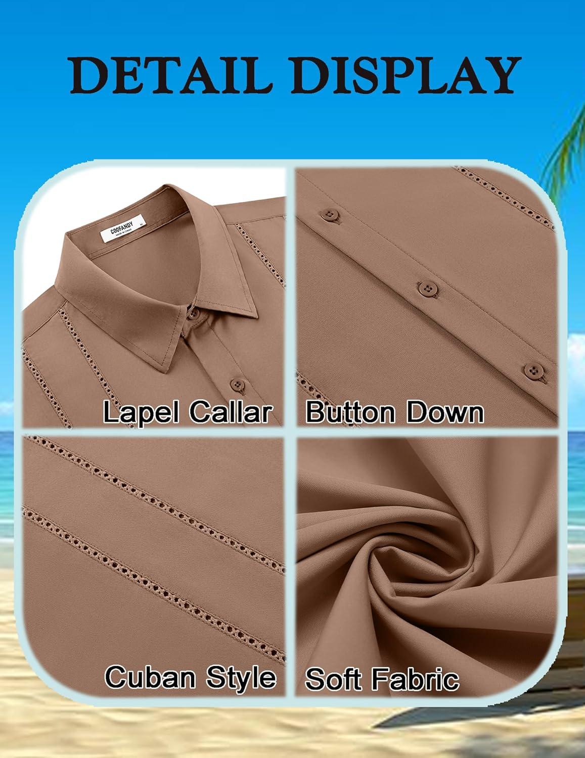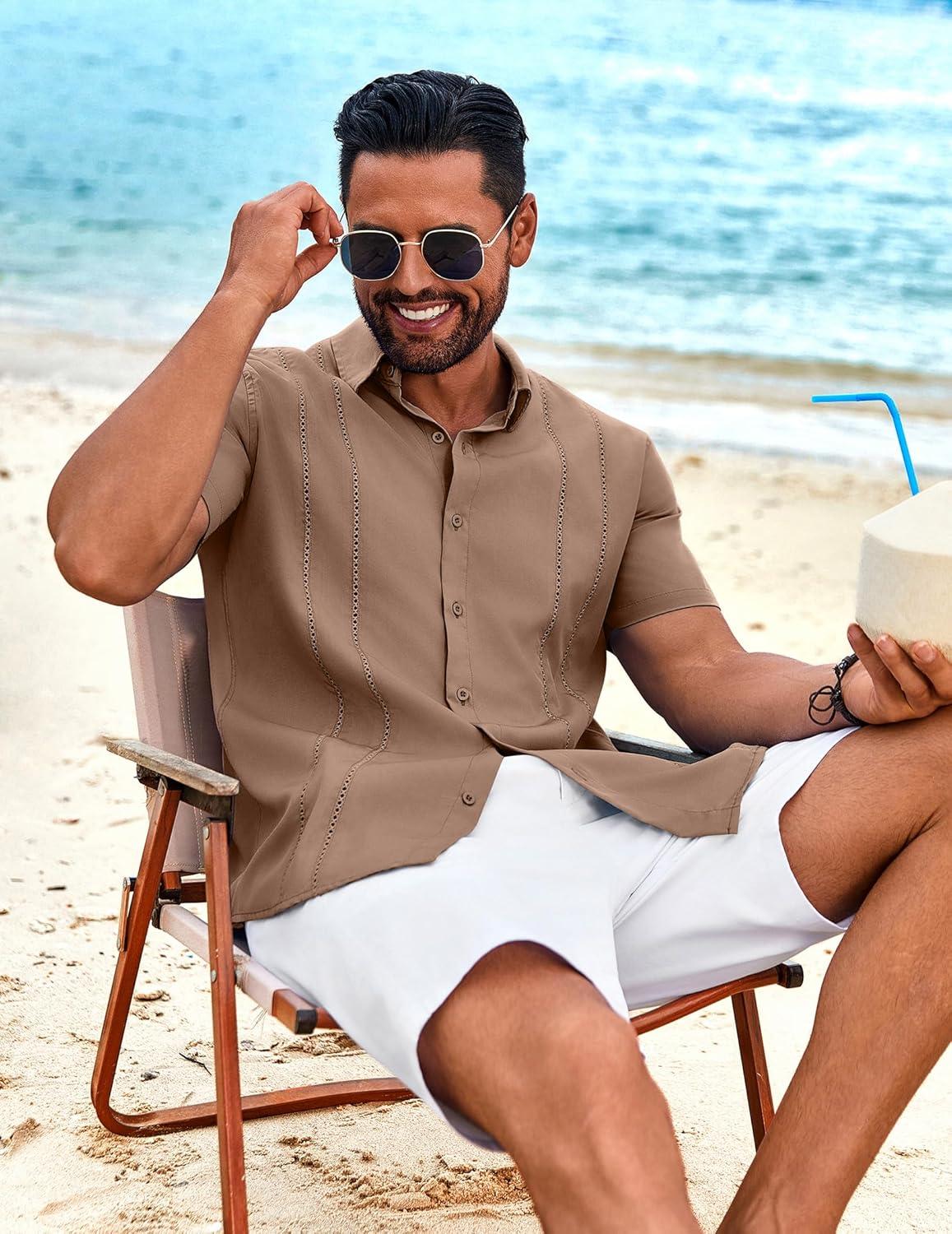 COOFANDY Mens Cuban Guayabera Shirt Short Sleeve Button Down Shirts Summer Beach Vacation Shirts(Caramel)
