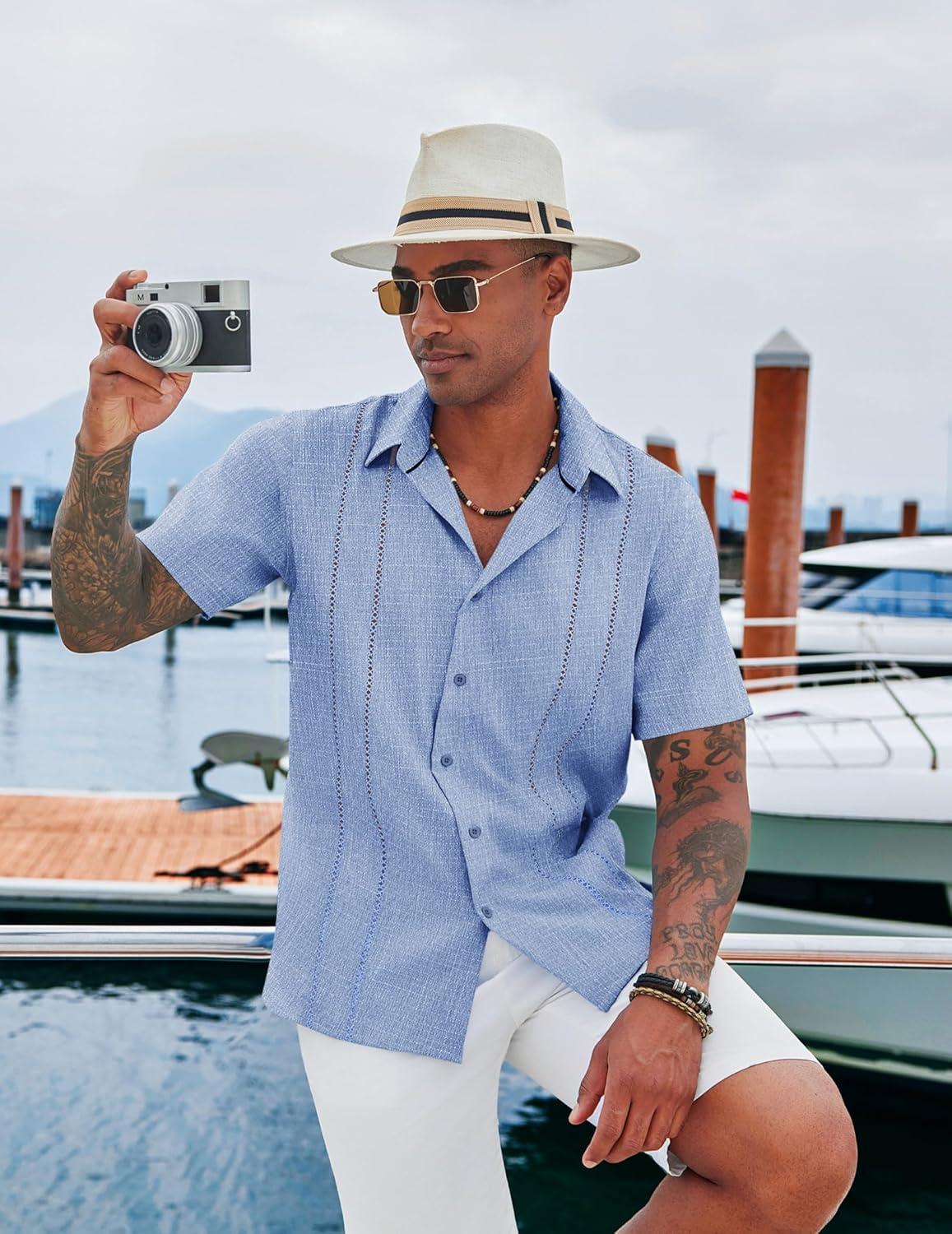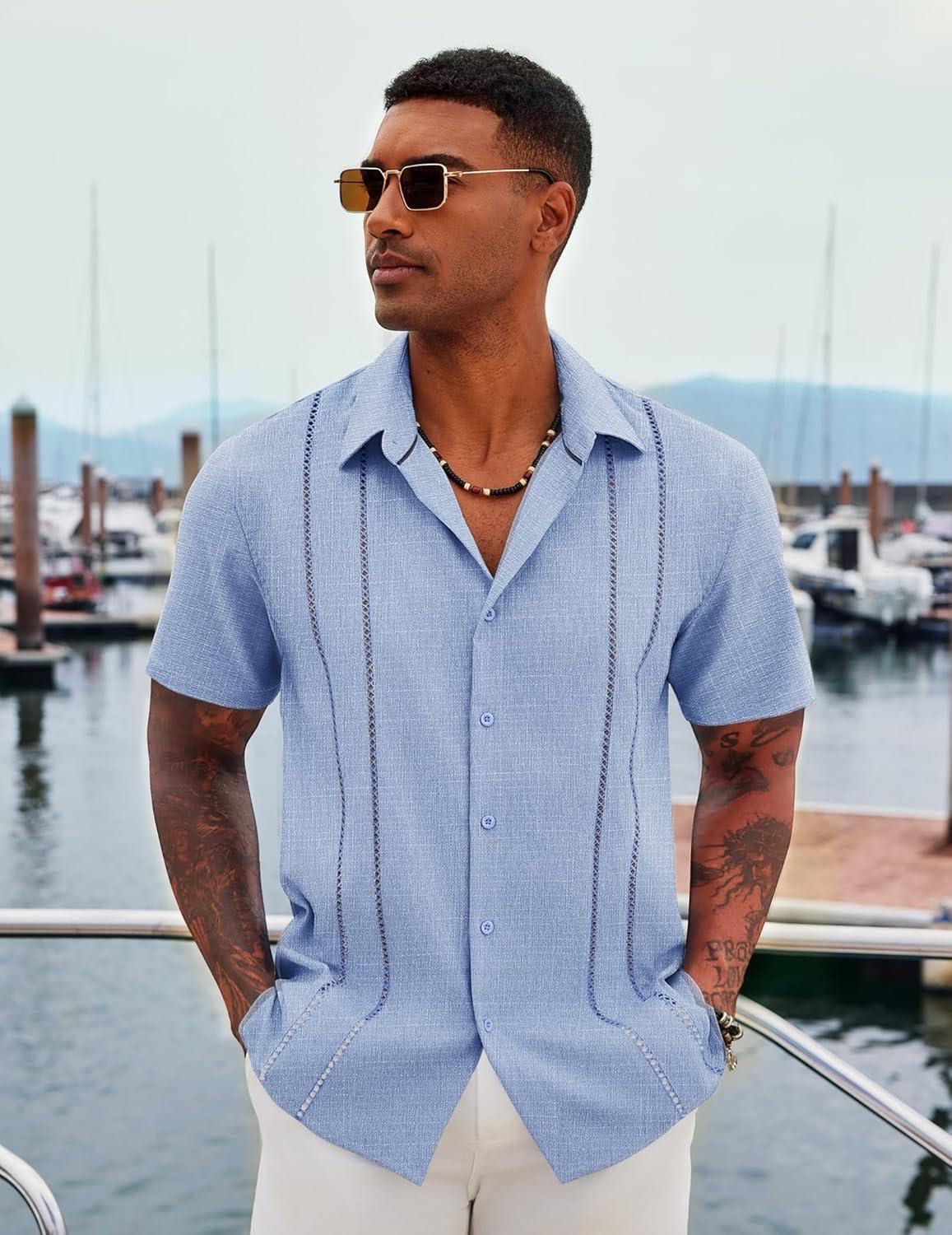 COOFANDY Mens Cuban Guayabera Shirt Short Sleeve Button Down Shirts Summer Beach Vacation Shirts(Cornflower Blue)