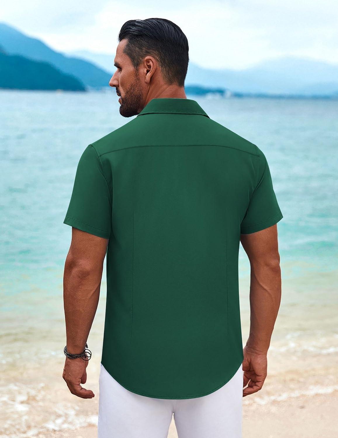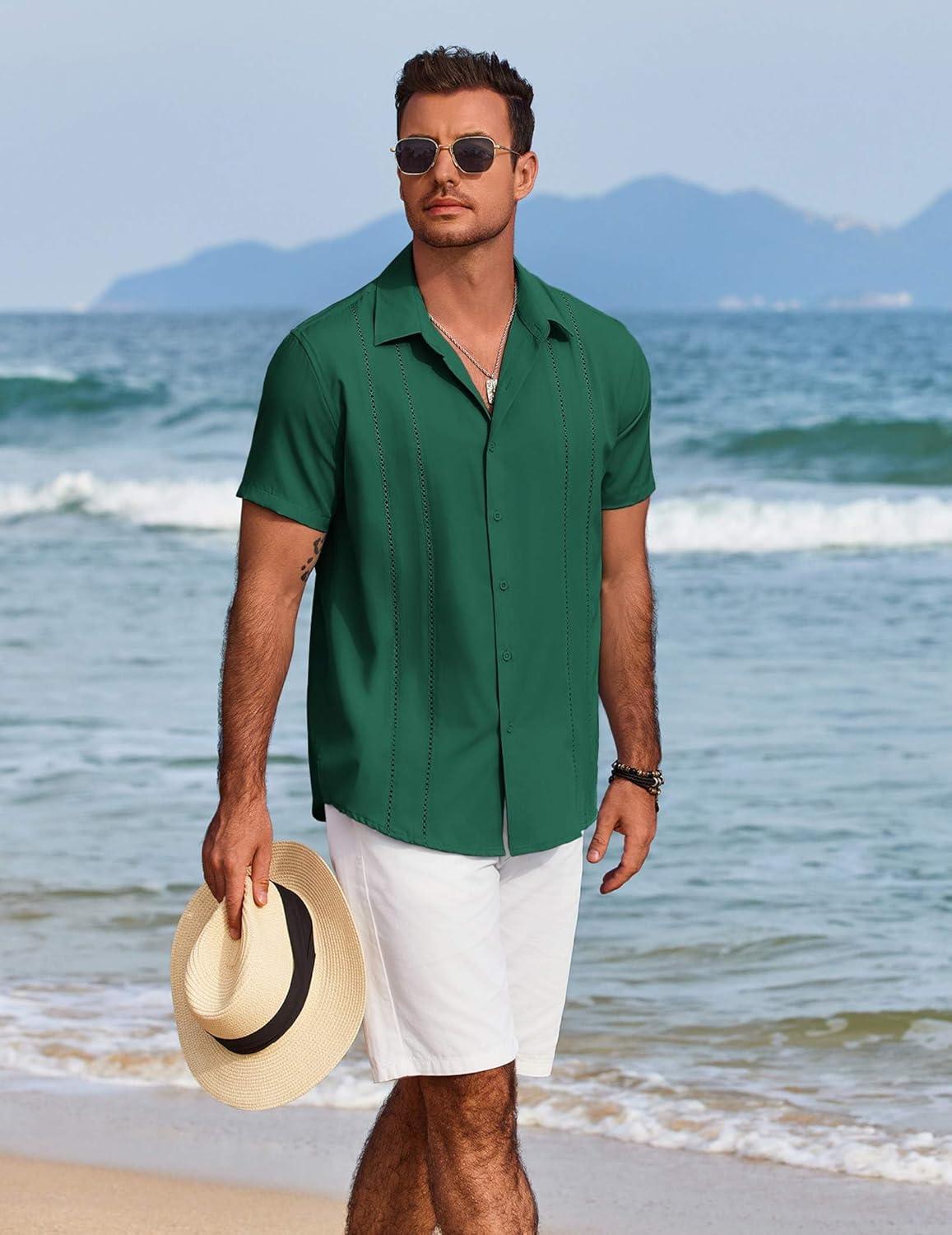COOFANDY Mens Cuban Guayabera Shirt Short Sleeve Button Down Shirts Summer Beach Vacation Shirts(Green)