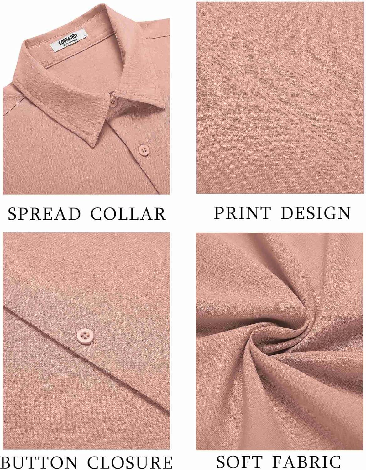 COOFANDY Mens Cuban Guayabera Shirt Short Sleeve Button Down Shirts Summer Beach Vacation Shirts(Misty Rose)