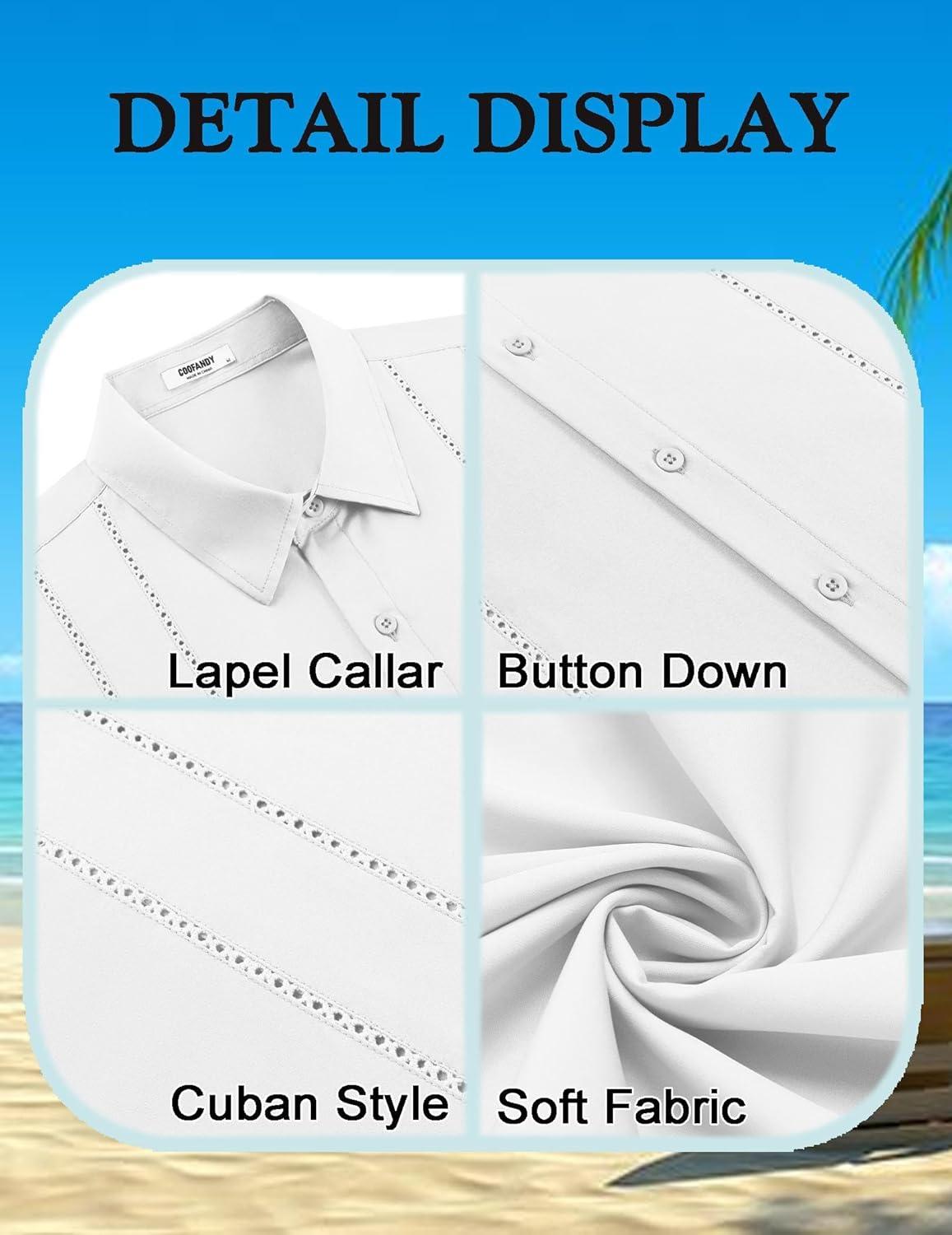COOFANDY Mens Cuban Guayabera Shirt Short Sleeve Button Down Shirts Summer Beach Vacation Shirts(White)