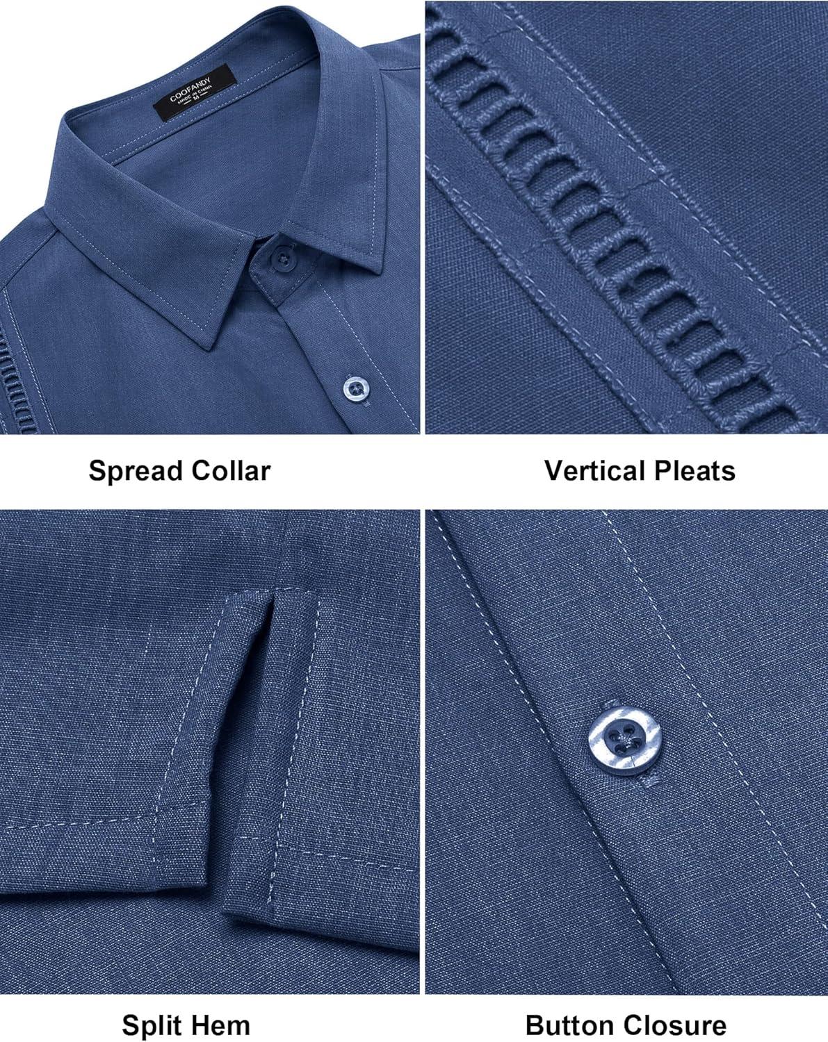COOFANDY Mens Cuban Guayabera Shirt Short Sleeve Linen Button Down Shirts Casual Summer Beach Tops(Royal Blue)