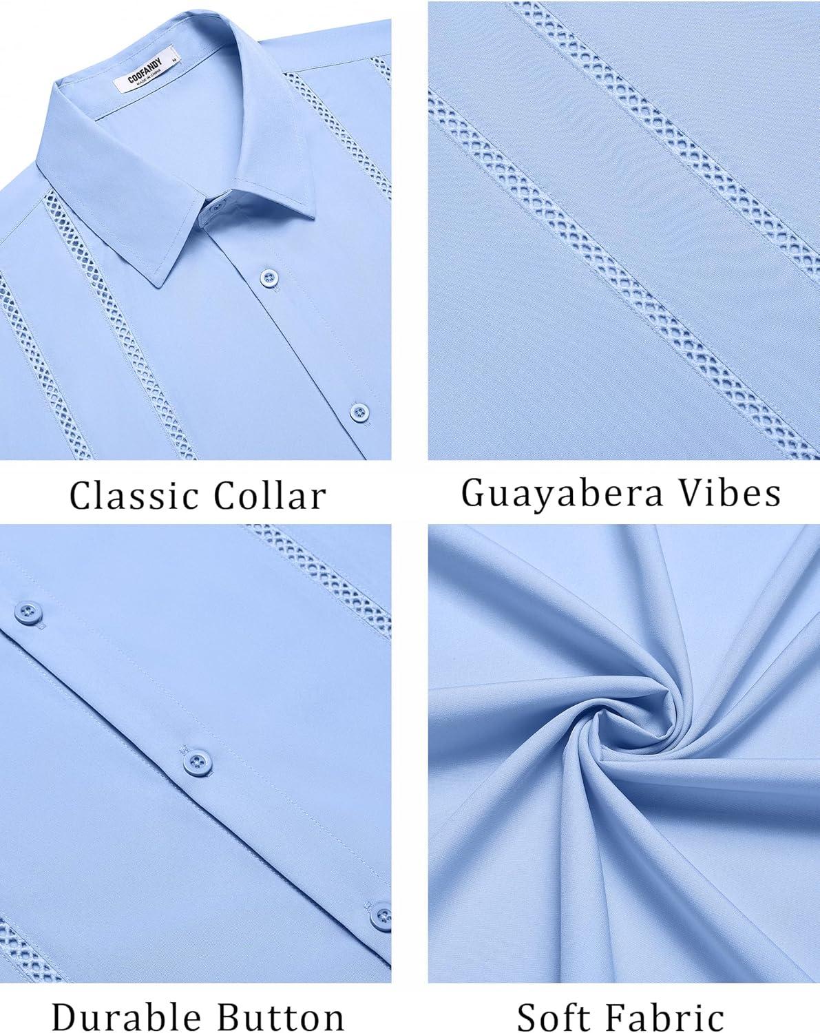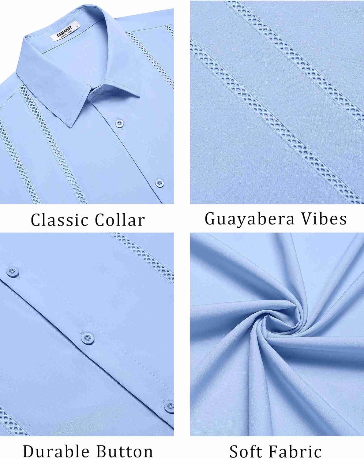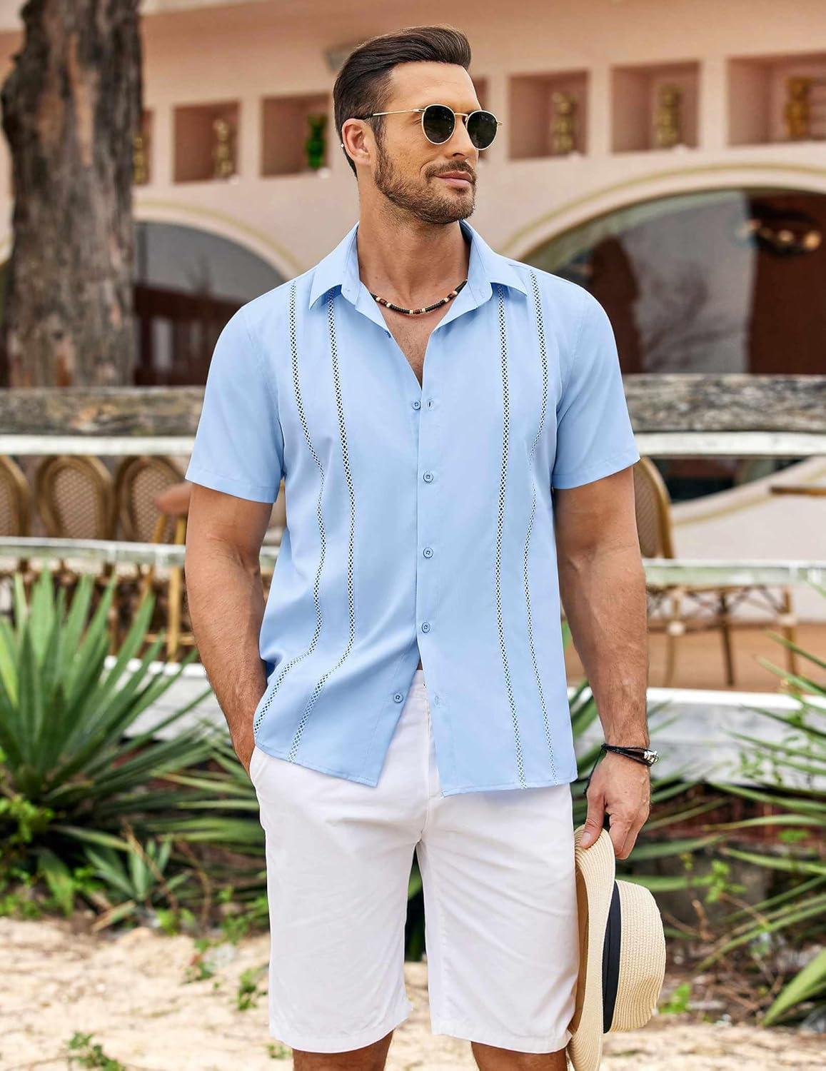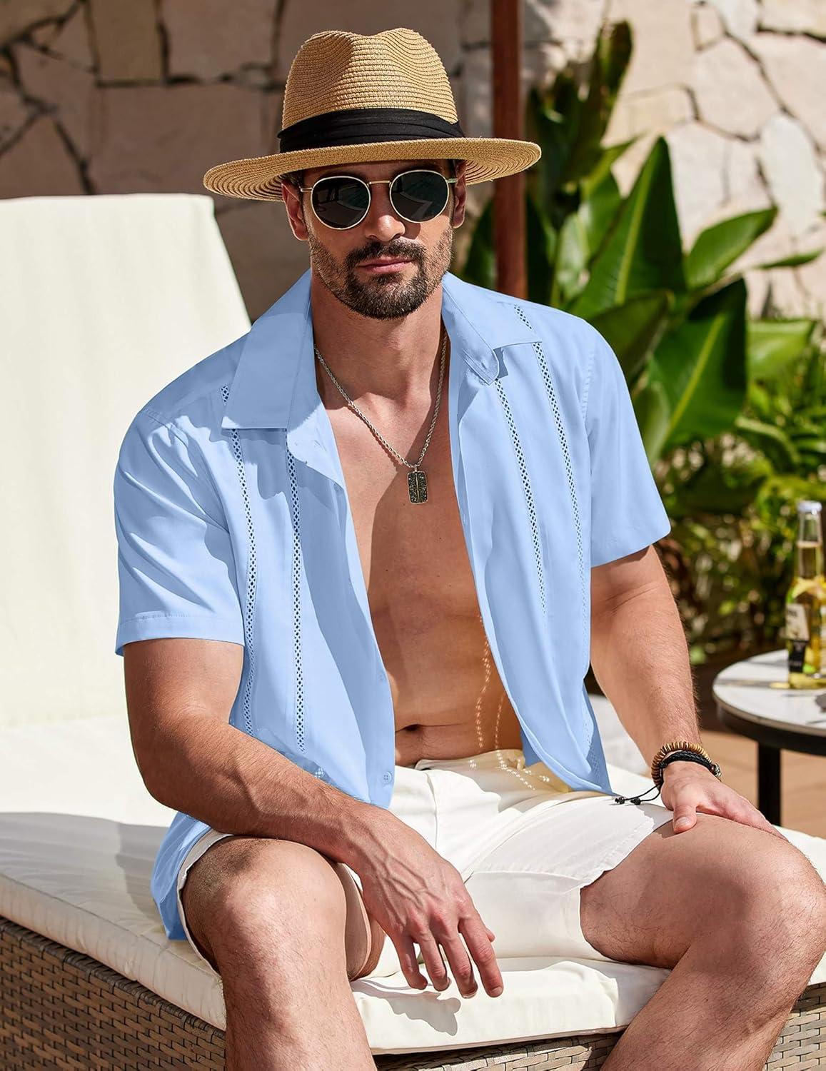 COOFANDY Men’s Cuban Guayabera Shirt Summer Beach Vacation Shirt Casual Short Sleeve Button Down Resort Wear(Angel Falls)