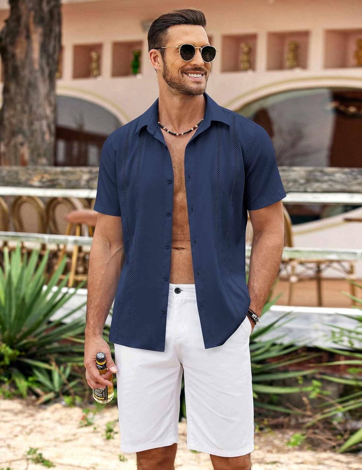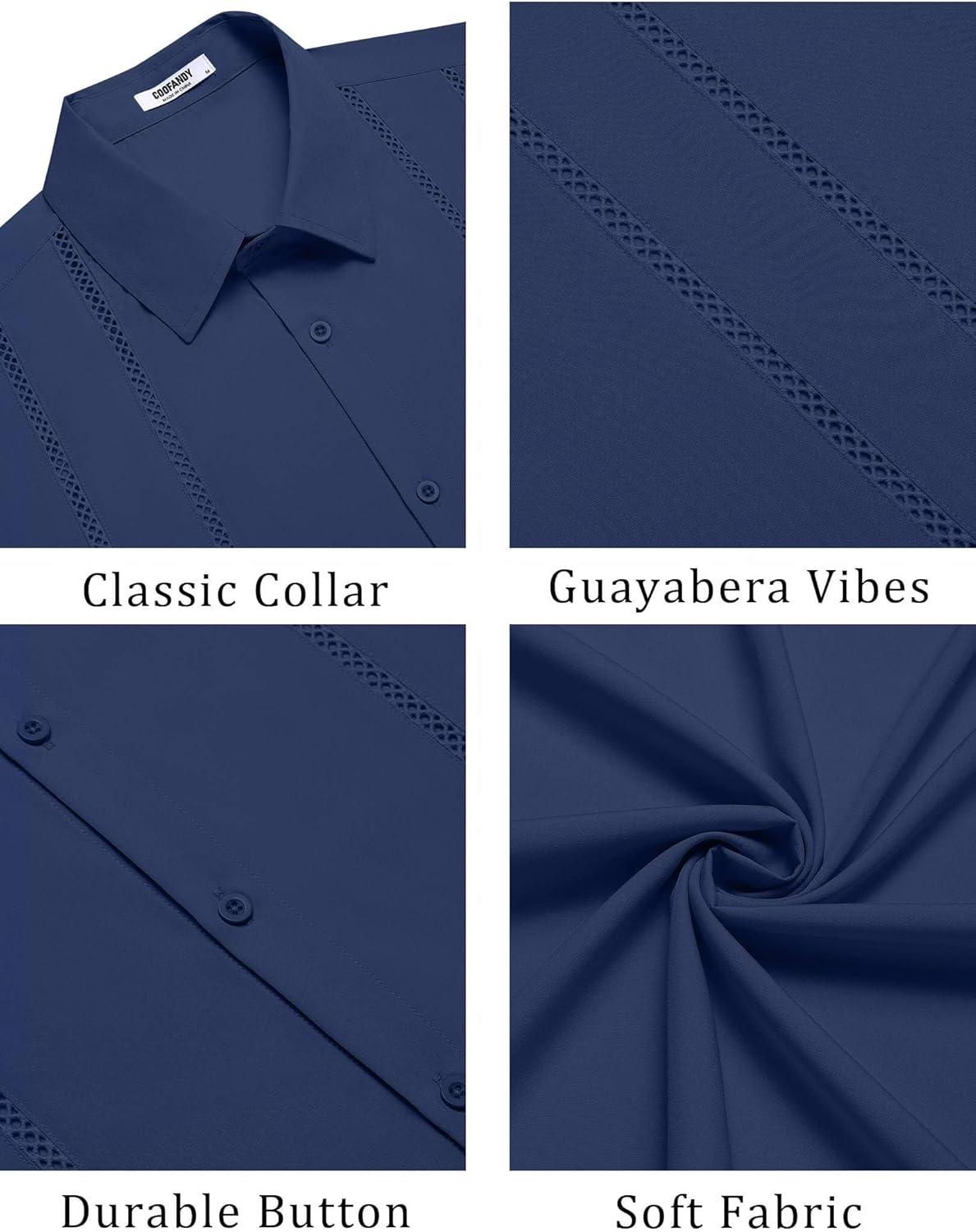 COOFANDY Men’s Cuban Guayabera Shirt Summer Beach Vacation Shirt Casual Short Sleeve Button Down Resort Wear(Black Iris)