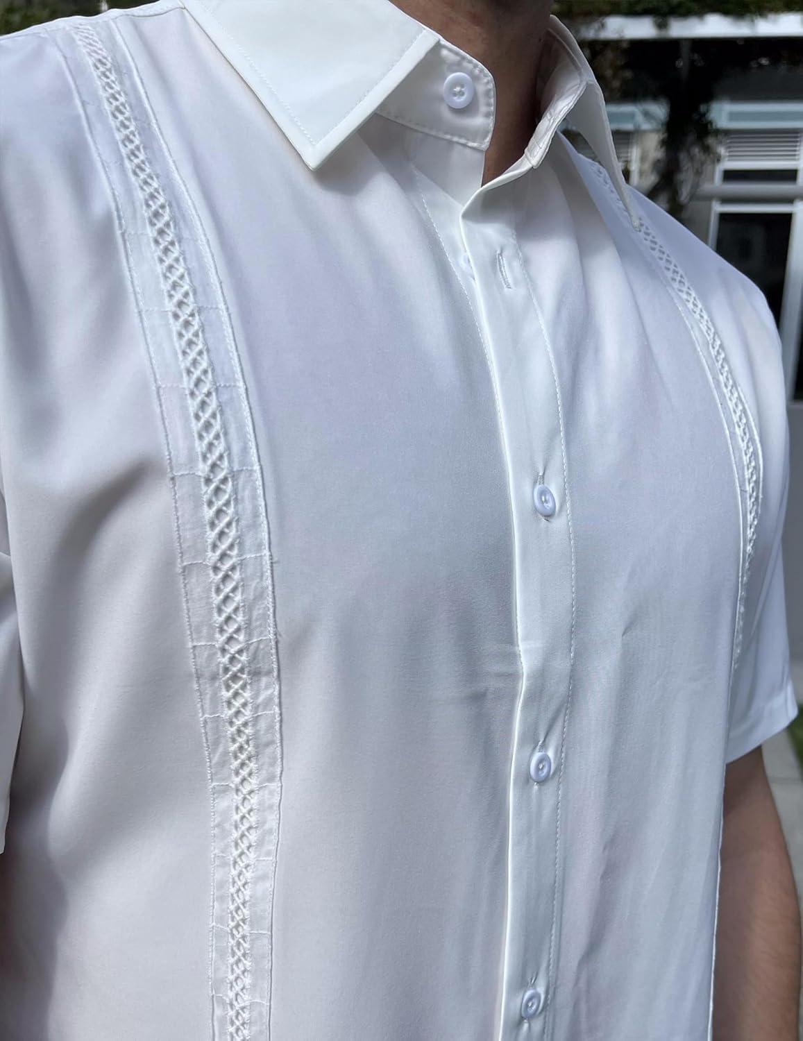 COOFANDY Men’s Cuban Guayabera Shirts Casual Short Sleeve Button Down Shirt Summer Beach Vacation Shirt(White)
