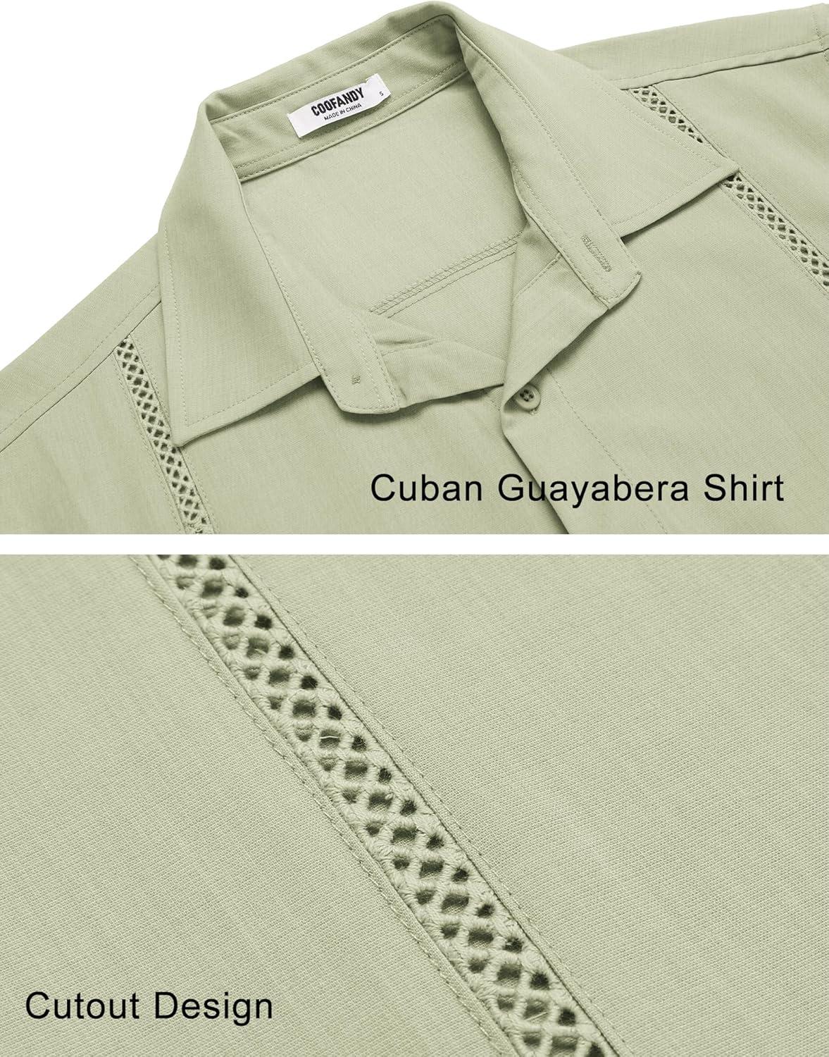 COOFANDY Mens Cuban Guayabera Shirts Short Sleeve Button Down Shirt Lightweight Summer Beach Shirts(Light Green)