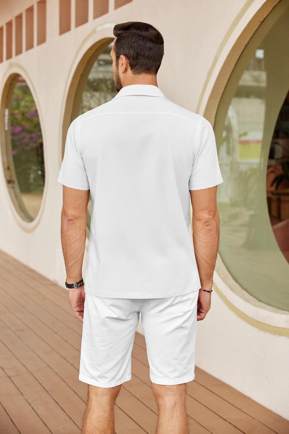 COOFANDY Mens Cuban Guayabera Shirts Short Sleeve Button Down Shirt Lightweight Summer Beach Shirts(White)