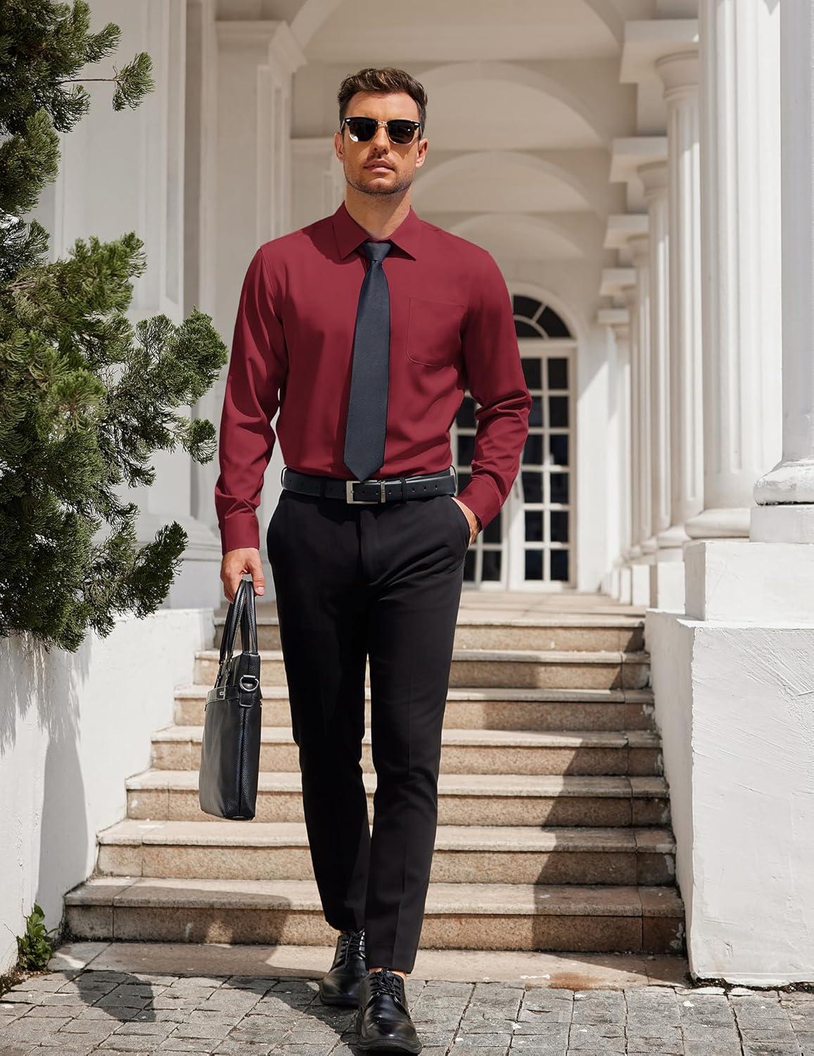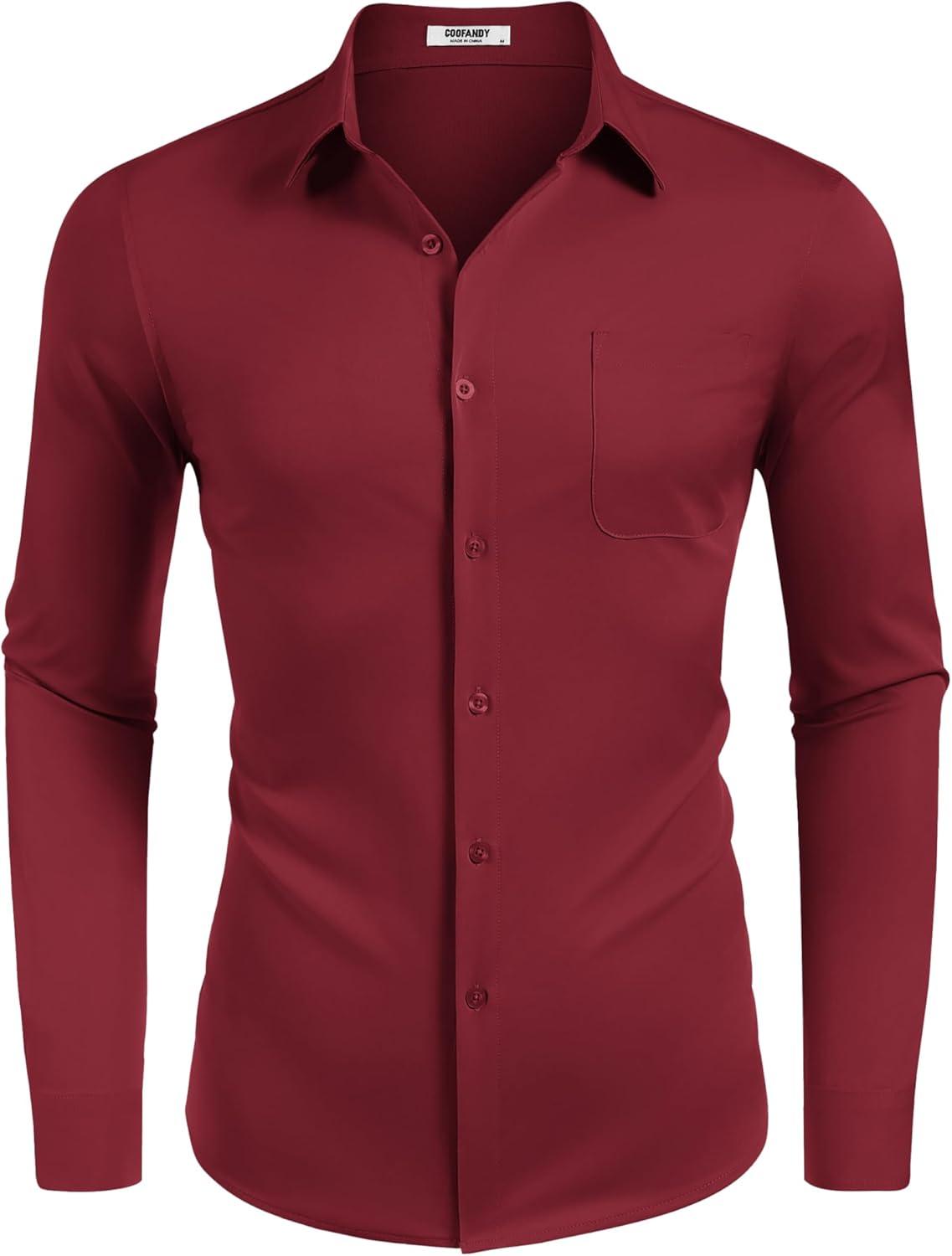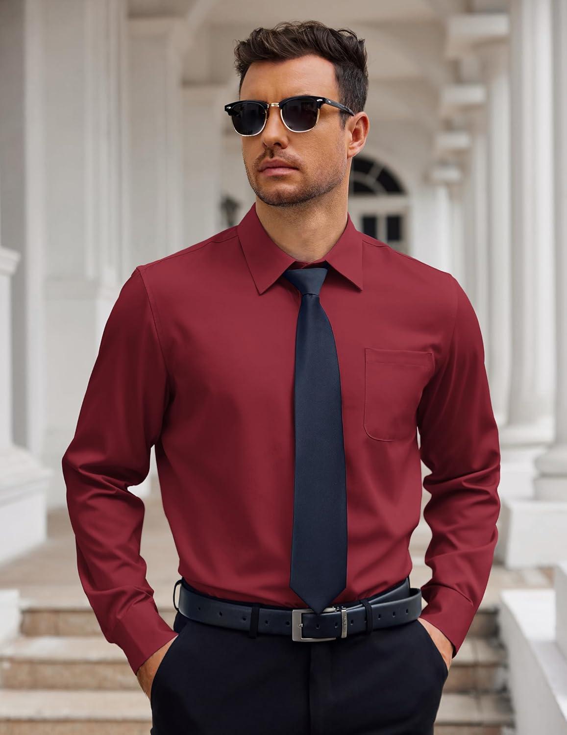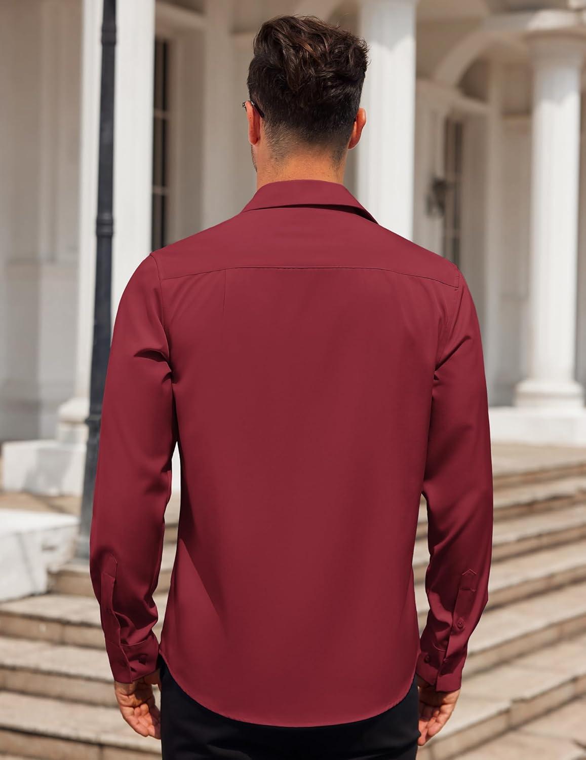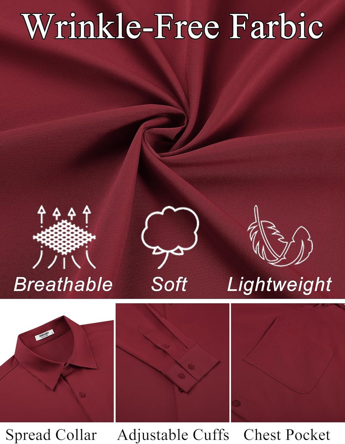 COOFANDY Mens Dress Shirt Long Sleeve Button Down Shirts Business Casual Wrinkle Free Shirts with Pocket(Wine Red)