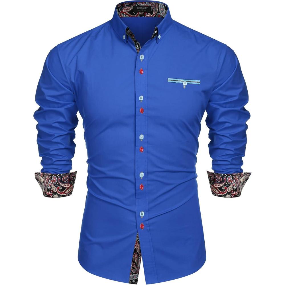 COOFANDY Mens Dress Shirt Long Sleeve Casual Button Down Paisley Shirts Party Wedding Dress Shirt(Royal Blue)