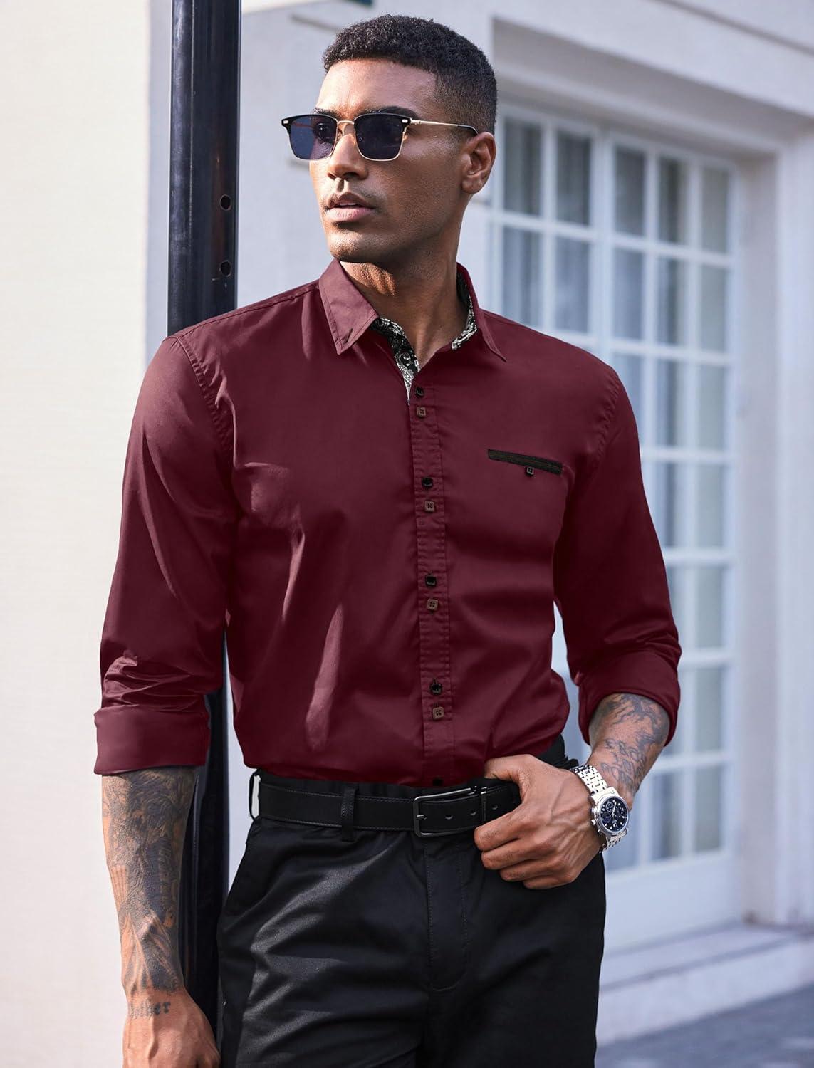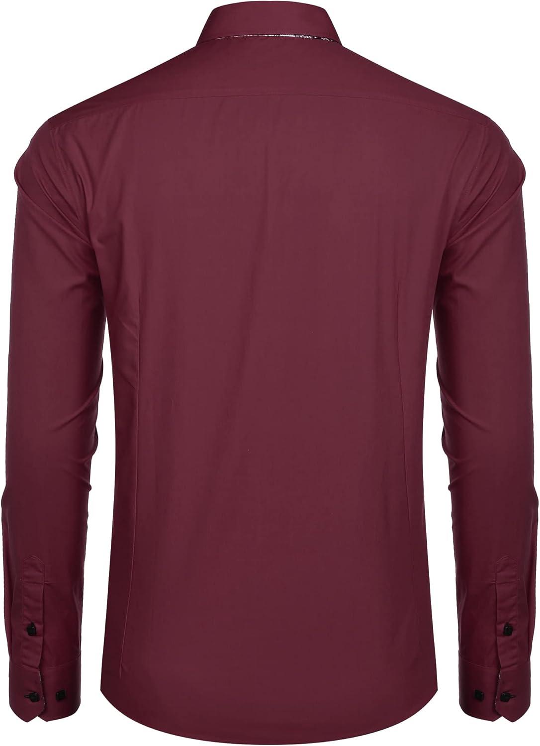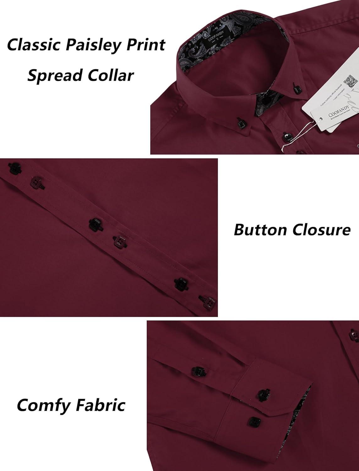 COOFANDY Mens Dress Shirt Long Sleeve Casual Button Down Paisley Shirts Party Wedding Dress Shirt(Wine Red)