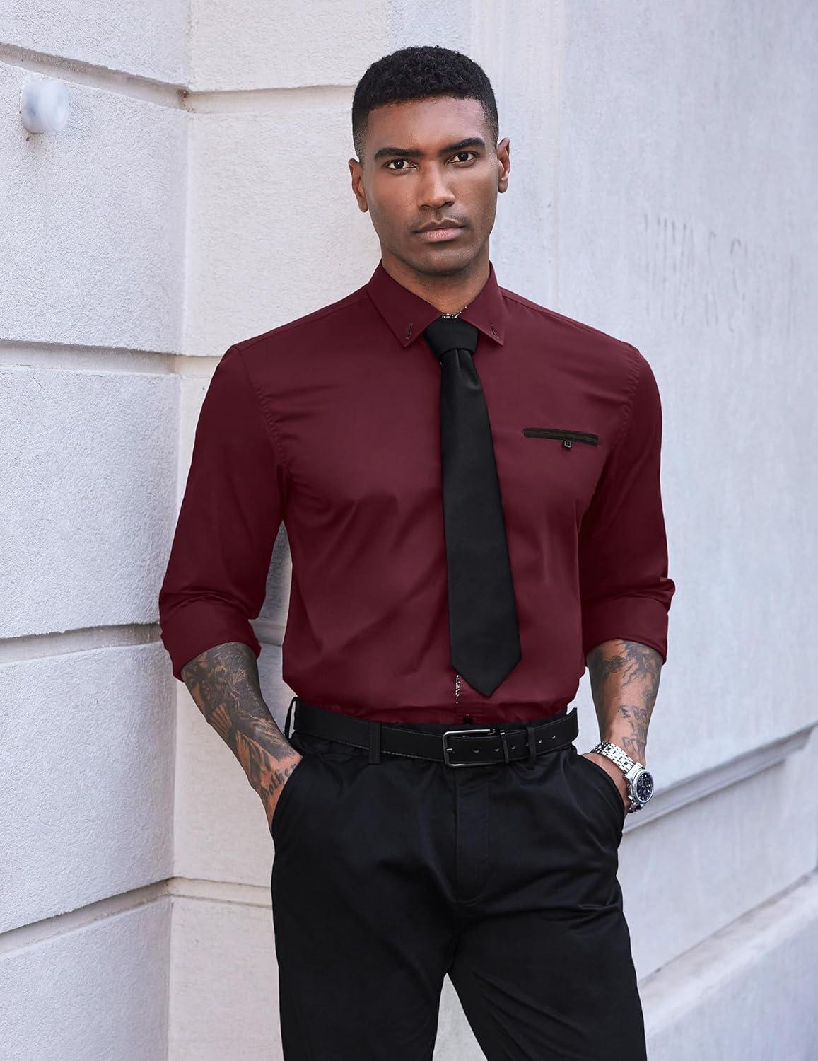 COOFANDY Men's Muscle Fit Dress Shirt Wrinkle Free Long Sleeve Button Down Shirt