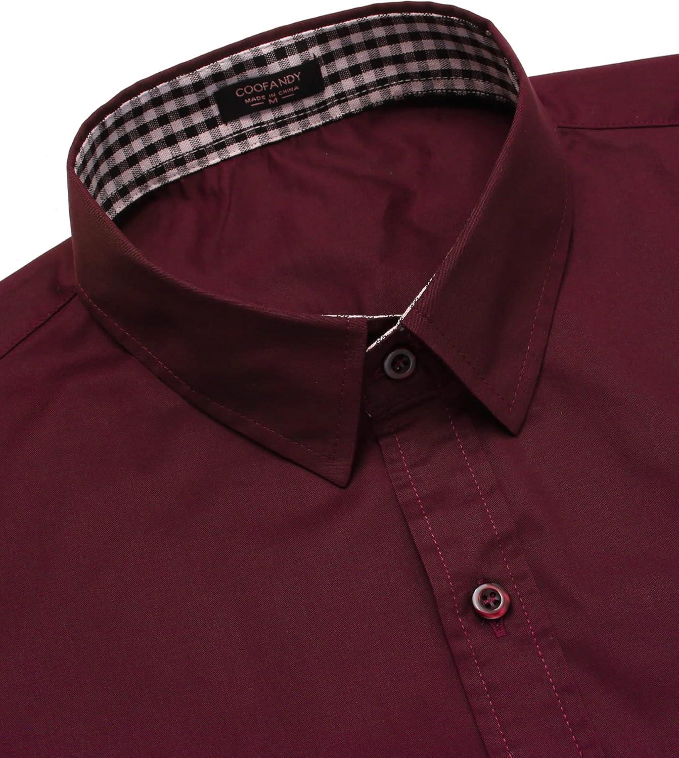 COOFANDY Men’s Dress Shirt Long Sleeve Casual Button Down Shirt Wrinkle Free Formal Business Shirts(03_wine Red Solid)