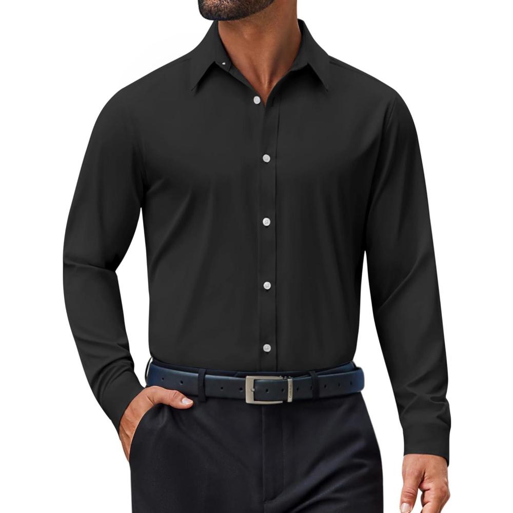 COOFANDY Mens Dress Shirt Long Sleeve Wrinkle Free Formal Shirts Business Casual Button Down Shirts(Black)