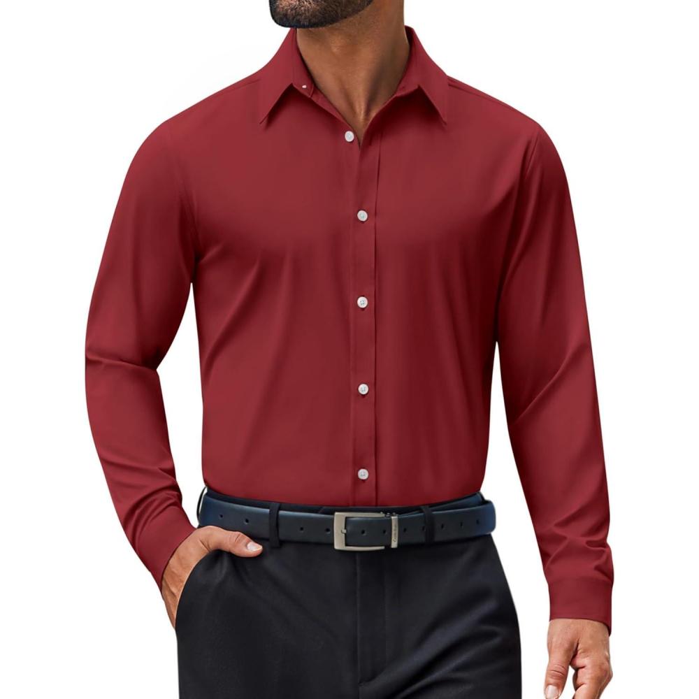 COOFANDY Mens Dress Shirt Long Sleeve Wrinkle Free Formal Shirts Business Casual Button Down Shirts(Wine Red)