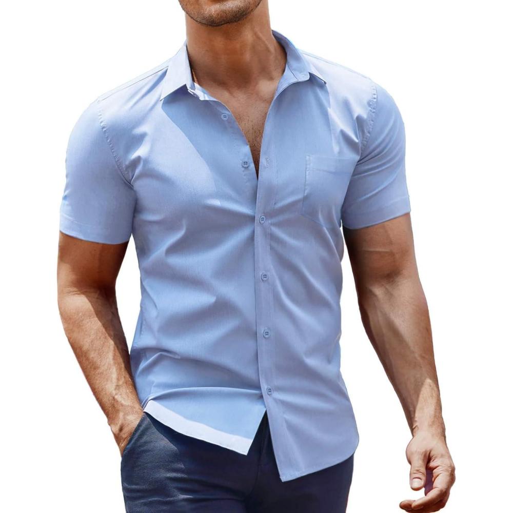 COOFANDY Men’s Dress Shirt Short Sleeve Button Down Shirts with Pocket(Light Blue)